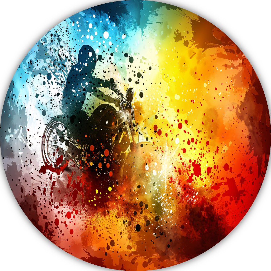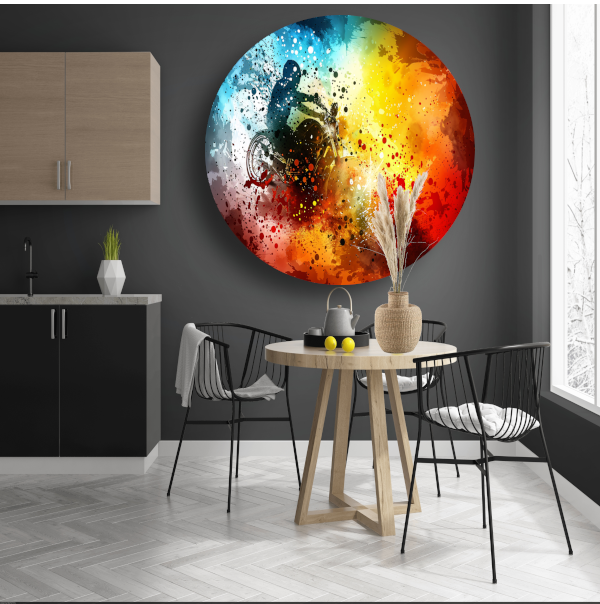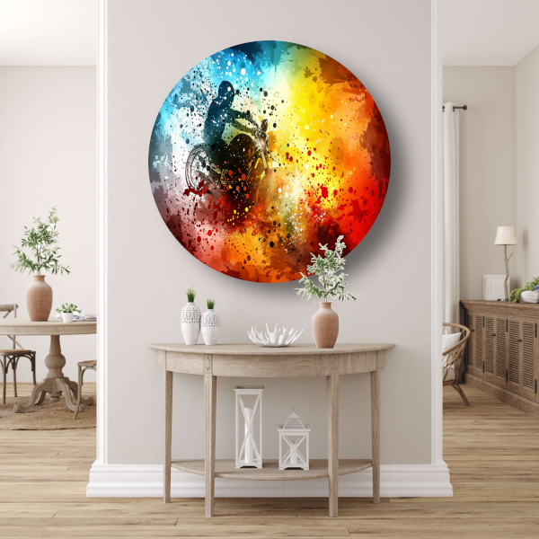 Abstracte Motorrijder in Eplosie van Kleur forex muurcirkel