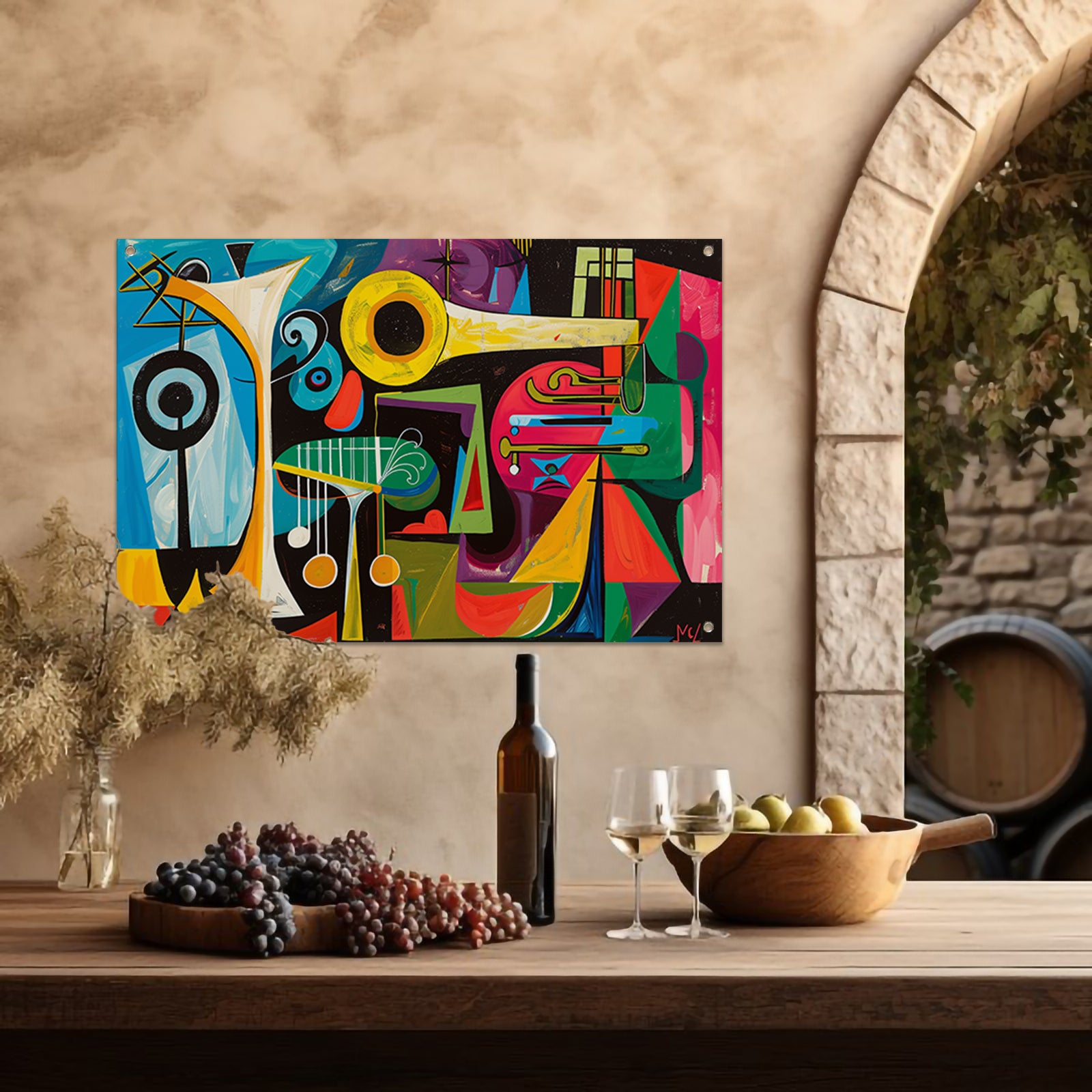 Abstracte muzikale vormen in levendige kleuren tuinposter