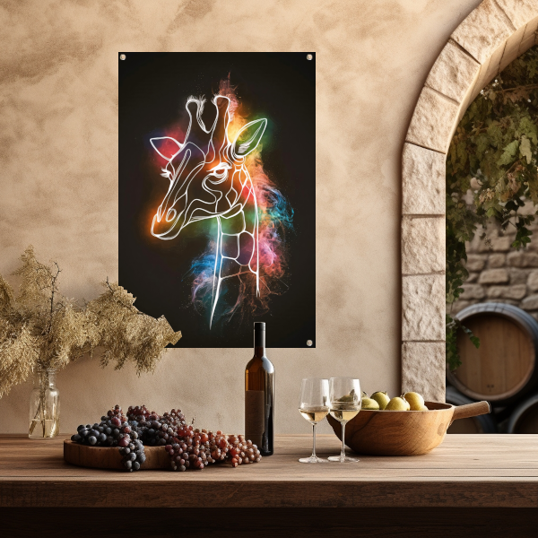 Abstracte Nevelige Kleurrijke Giraffe Lijnkunst tuinposter