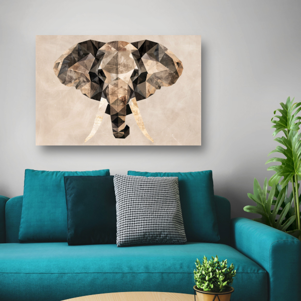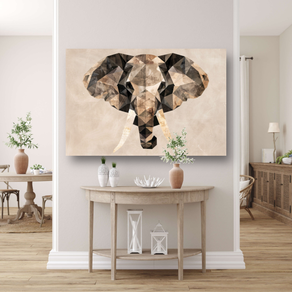 Abstracte Olifant in Geometrische Sepiatonen canvas met baklijst