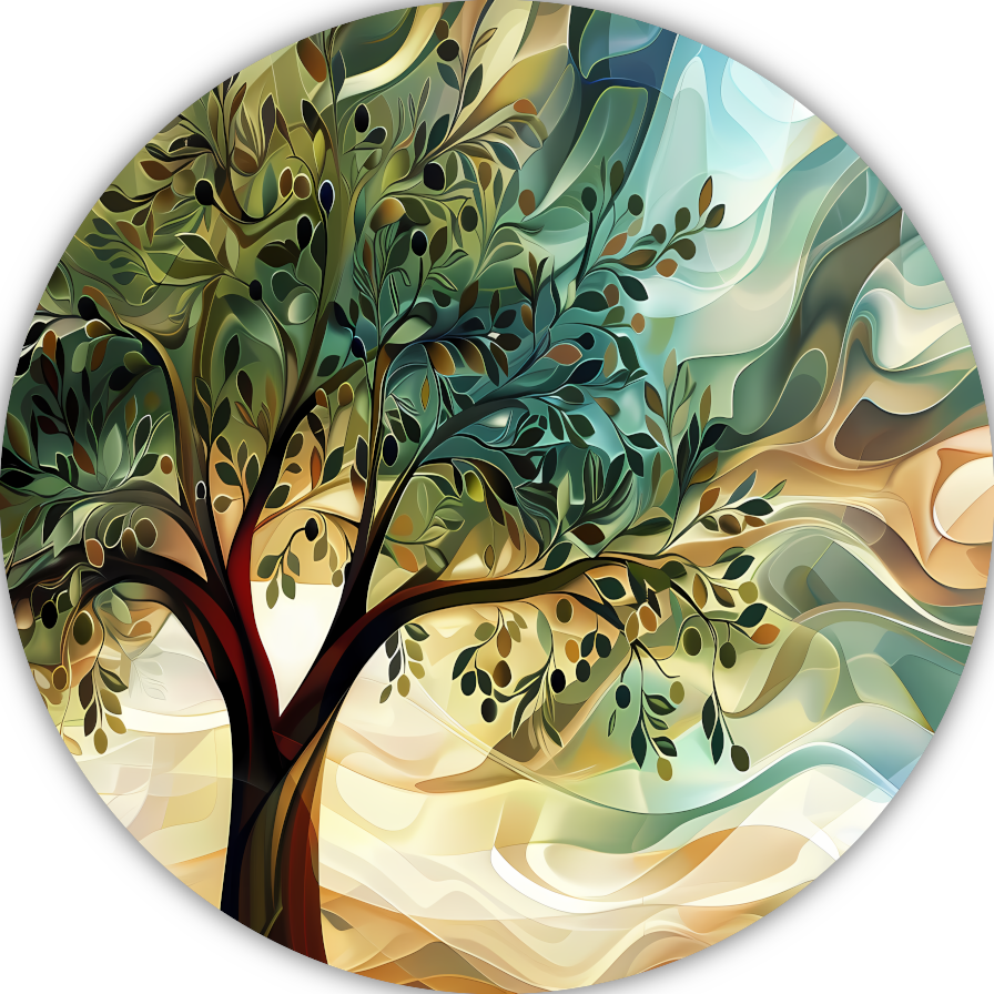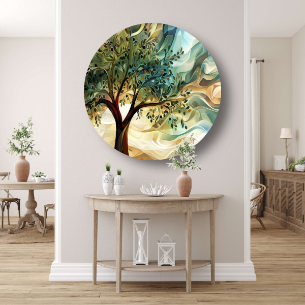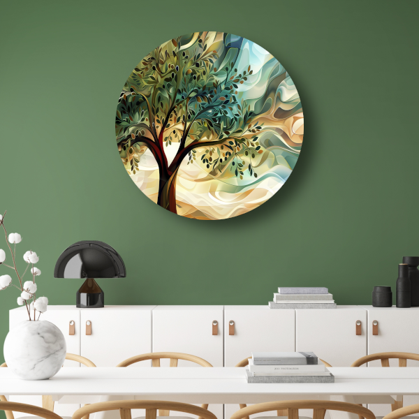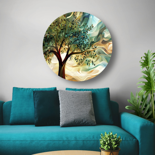 Abstracte olijfboom met takken aluminium muurcirkel