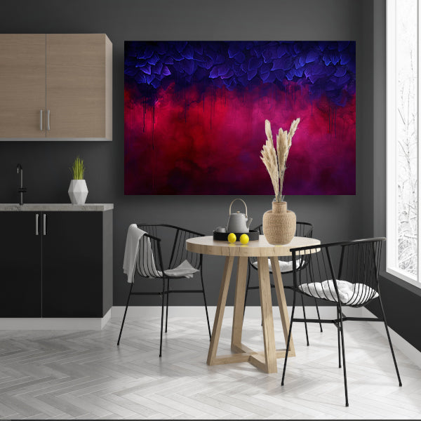 Abstracte paarse en rode rook met bladeren canvas met baklijst