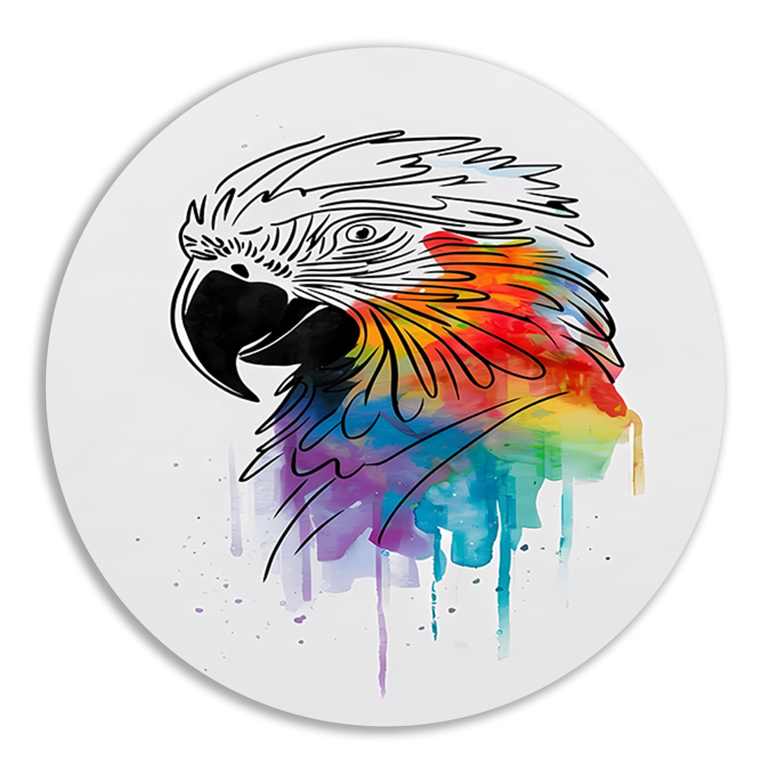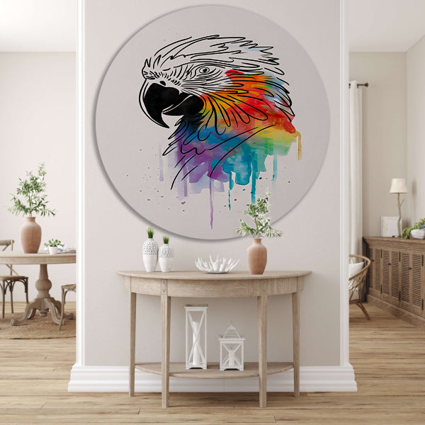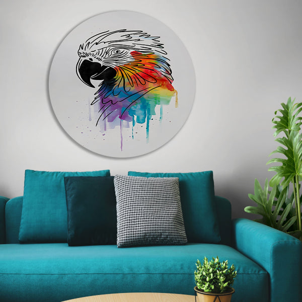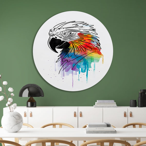 Abstracte papegaai in kleurrijke lijnkunst aluminium muurcirkel