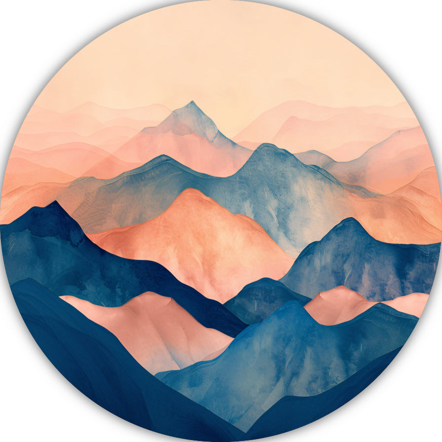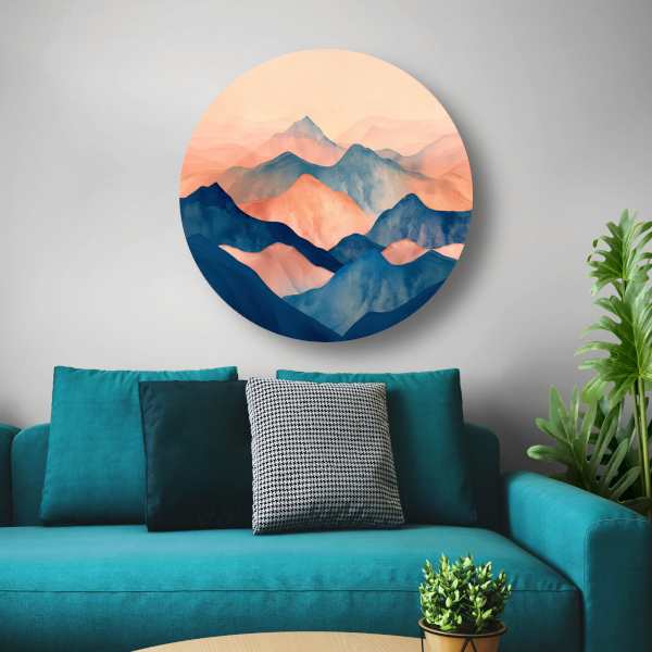 Abstracte Pastelkleurige Bergen in Harmonieuze Golven aluminium muurcirkel