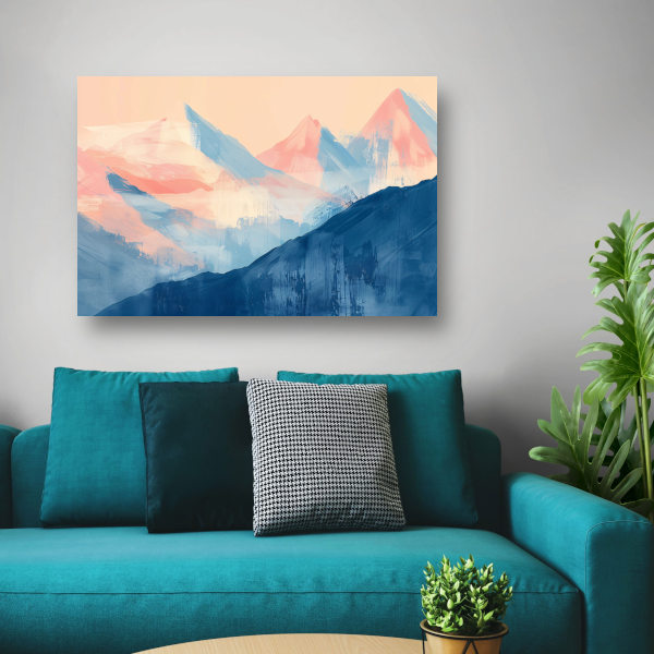 Abstracte pasteltinten van berglandschappen in zonlicht canvas met baklijst