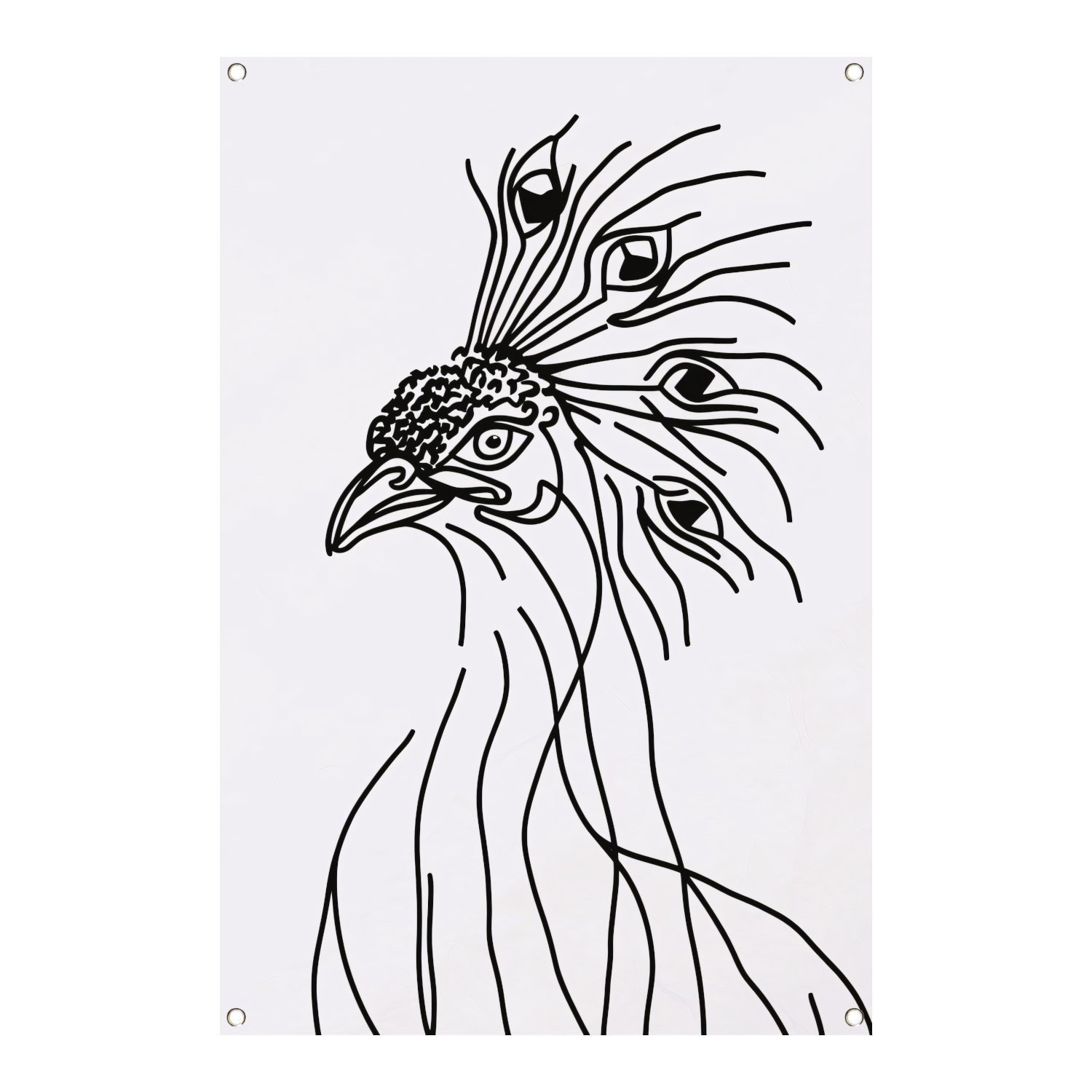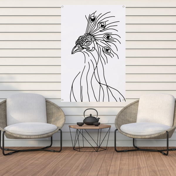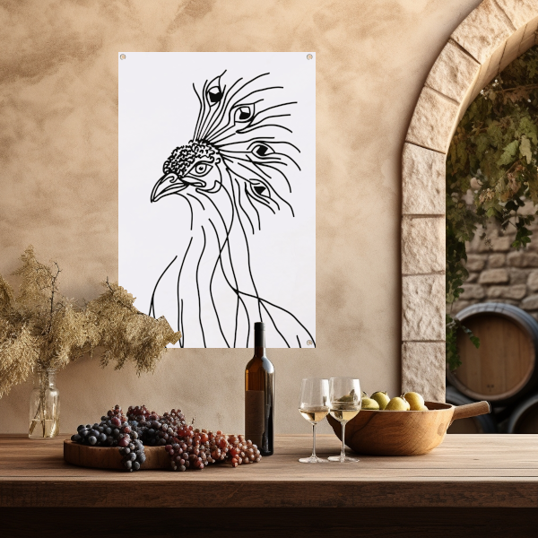 Abstracte Pauw Lijntekening in Zwart en Wit tuinposter
