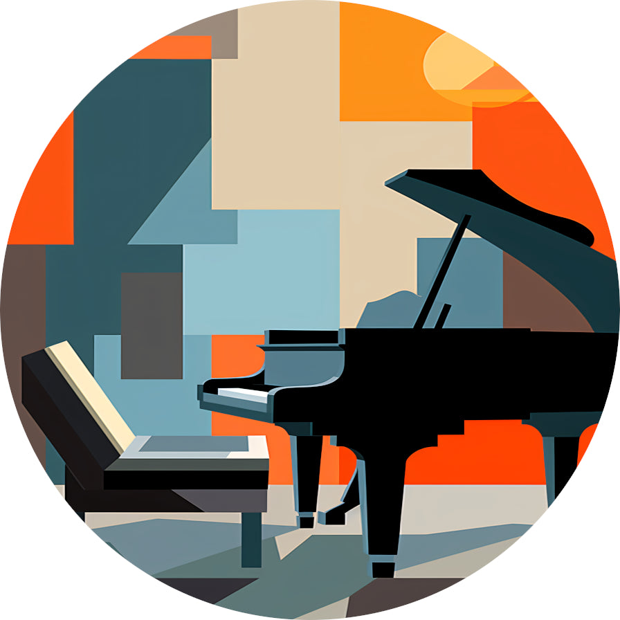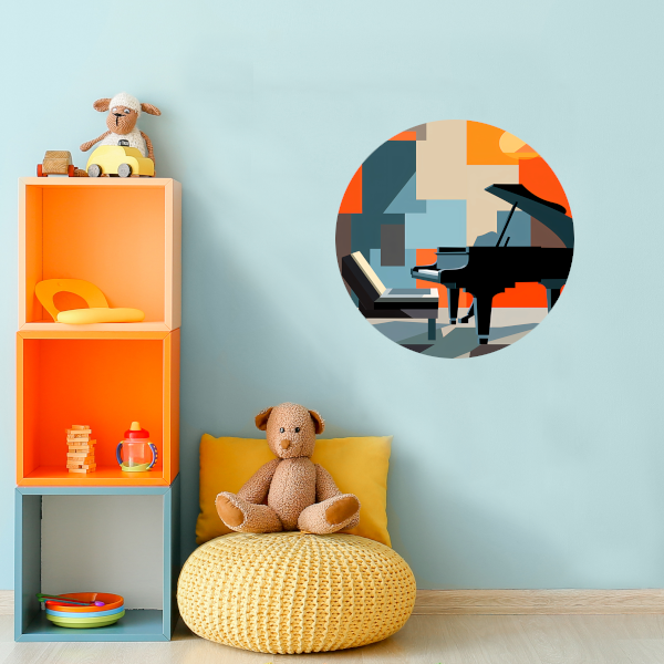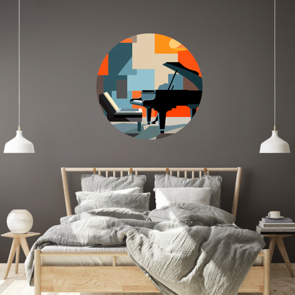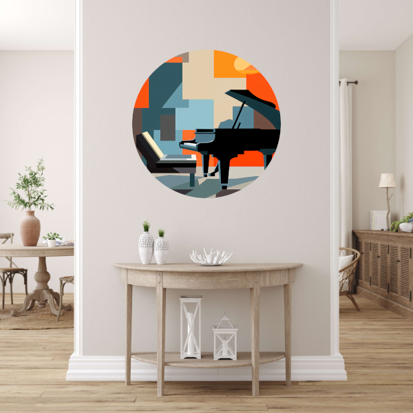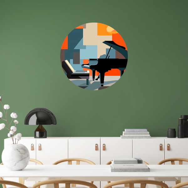 Abstracte Piano en Stoel Harmonie aluminium muurcirkel