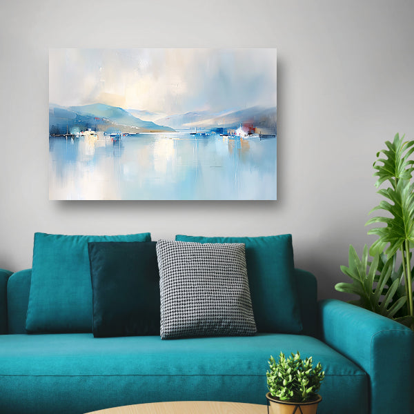 Abstracte rivierlandschap in zachte pastelkleuren poster