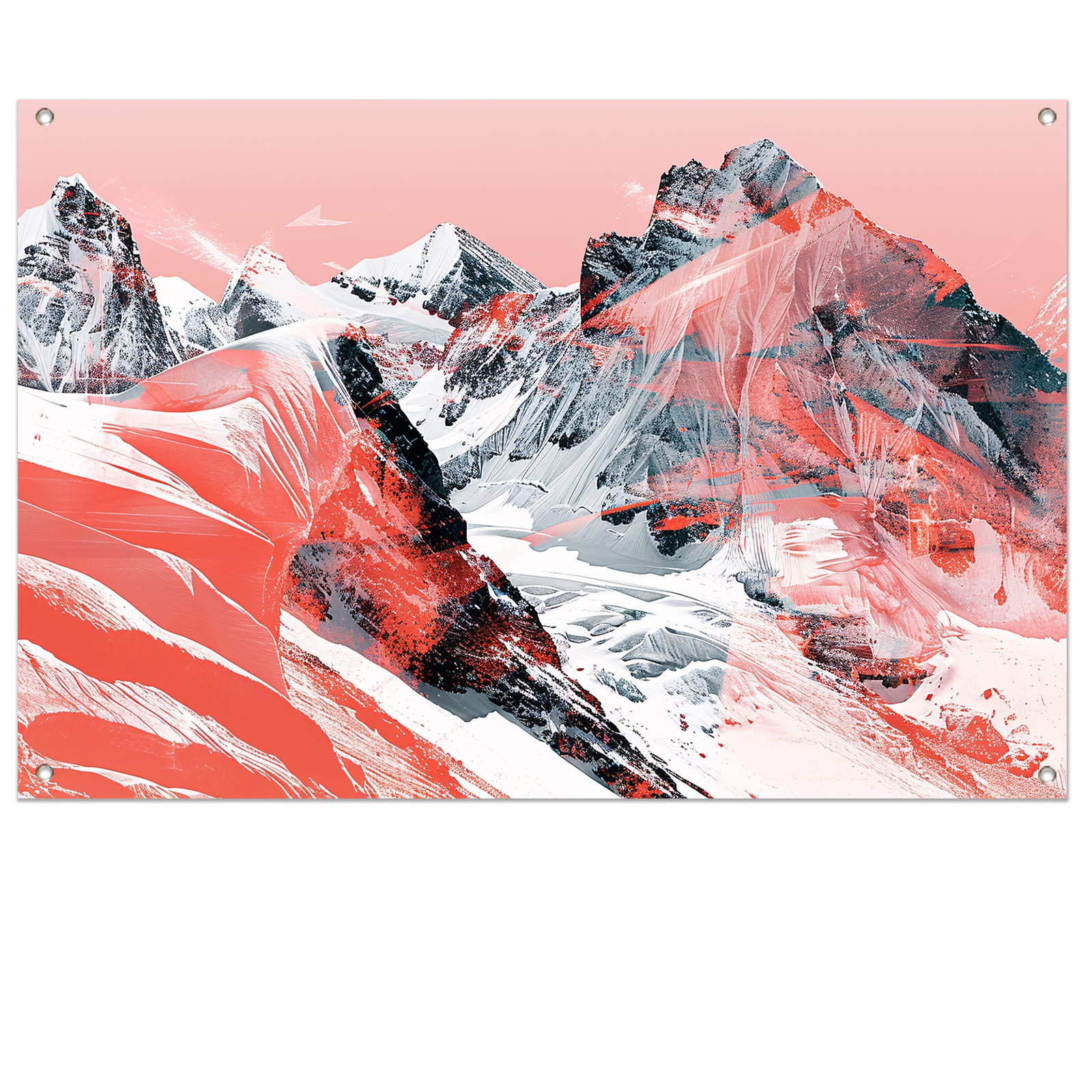 Abstracte schilderij van berglandschap in rood tuinposter