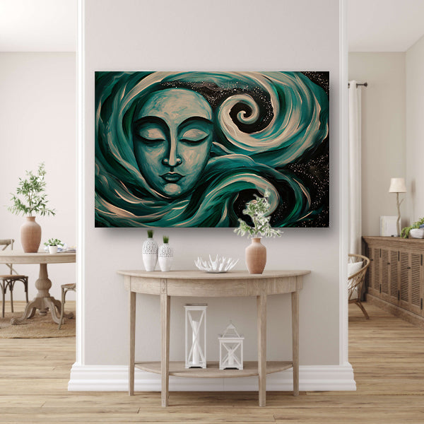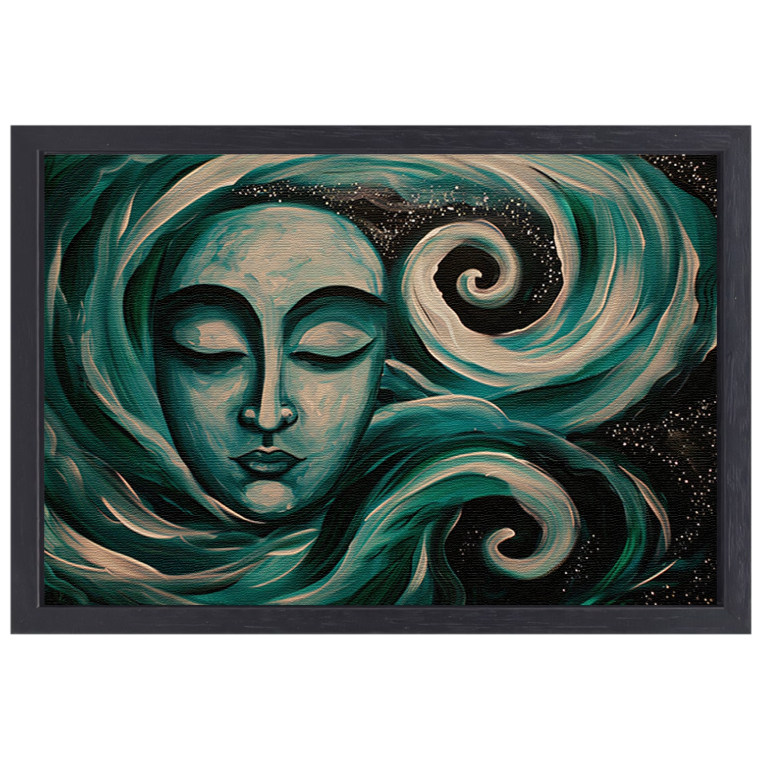 Abstracte schilderij van Boeddha met sterren canvas met baklijst
