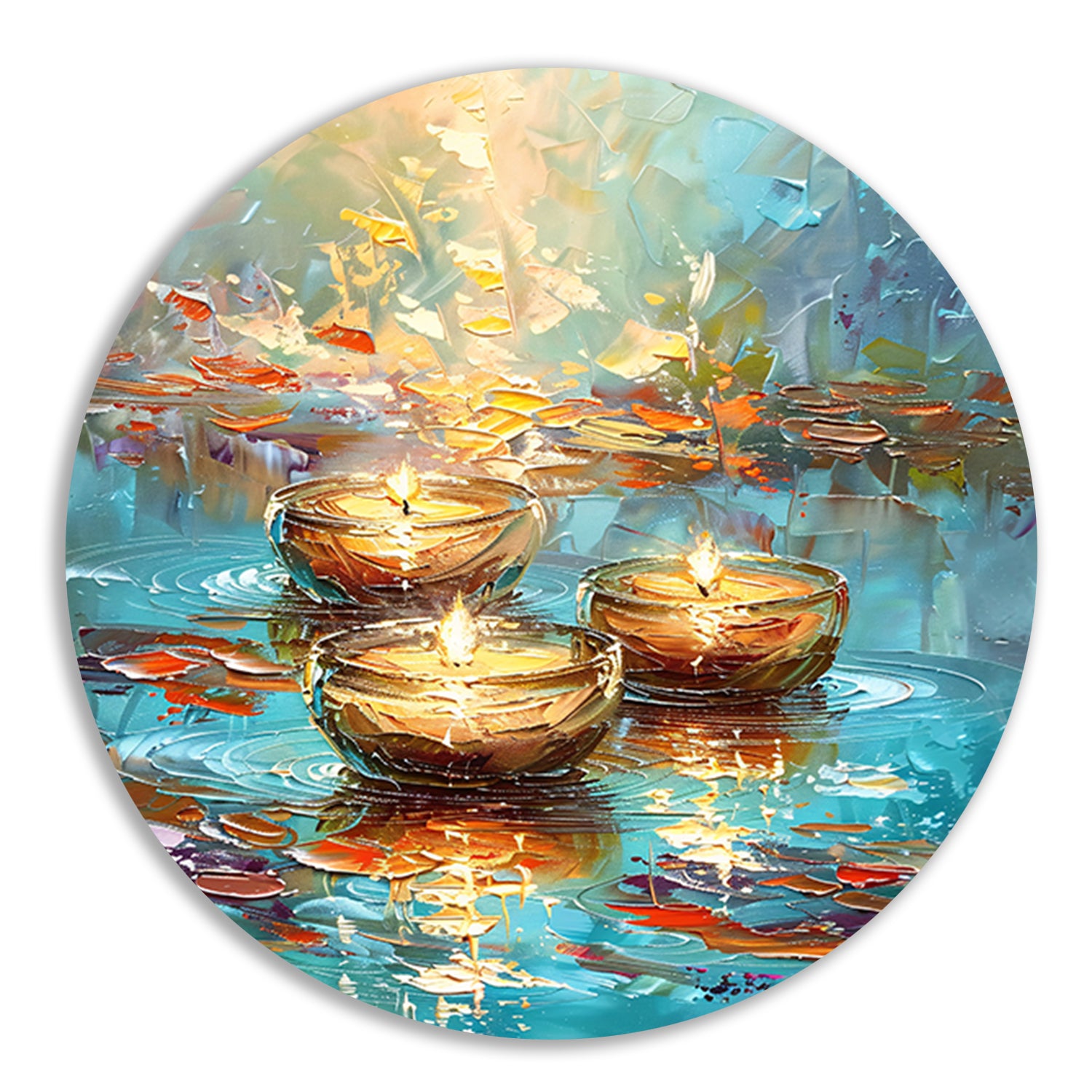 Abstracte schilderij van drijvende kaarsen forex muurcirkel