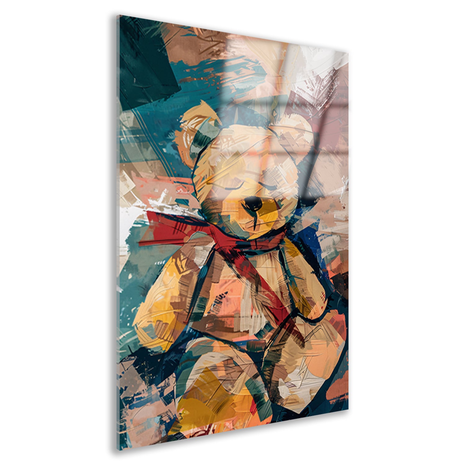 Abstracte Schilderij van een Teddybeer met Sjaal acrylglas