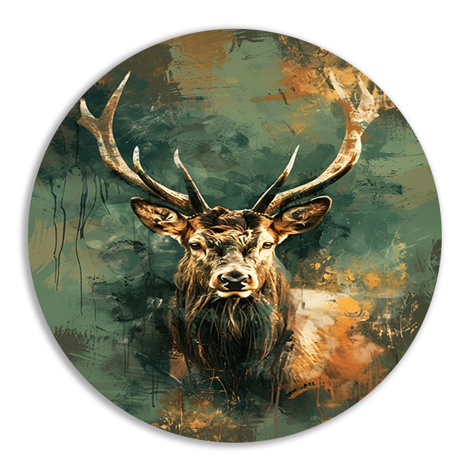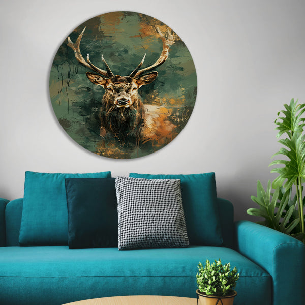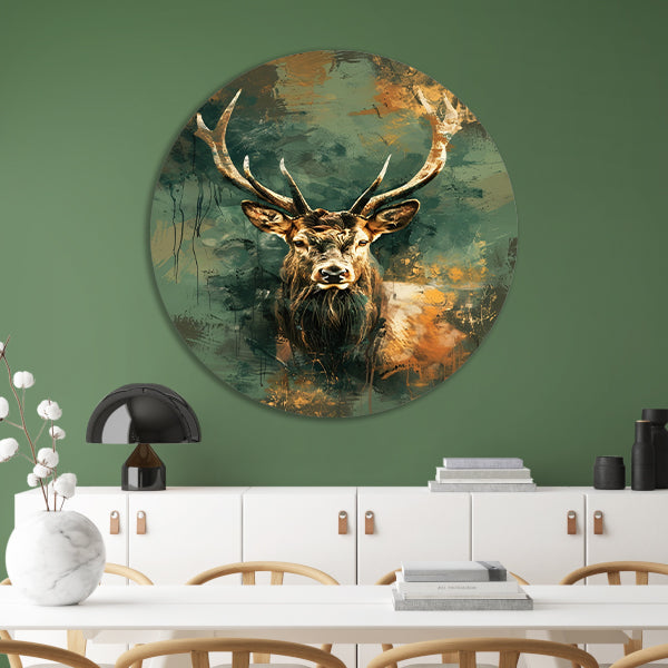 Abstracte schilderij van hert met kleuren aluminium muurcirkel