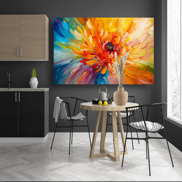 Abstracte schilderij van kleurrijke chrysant canvas met baklijst