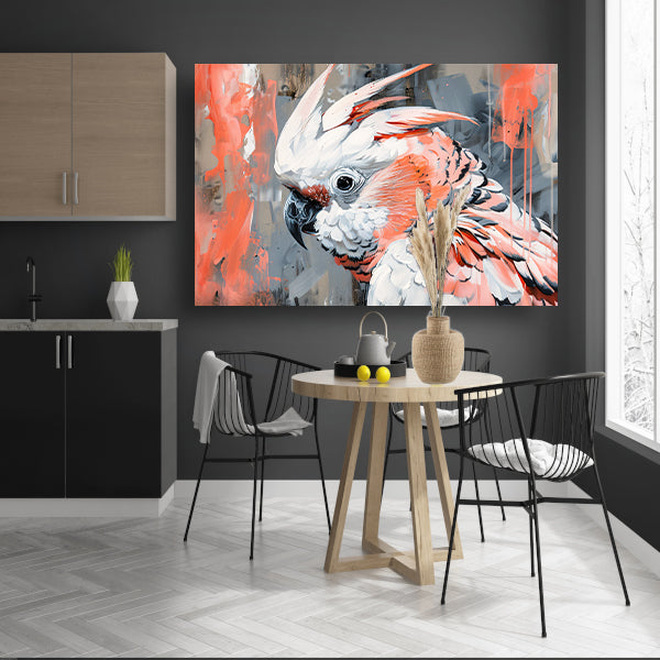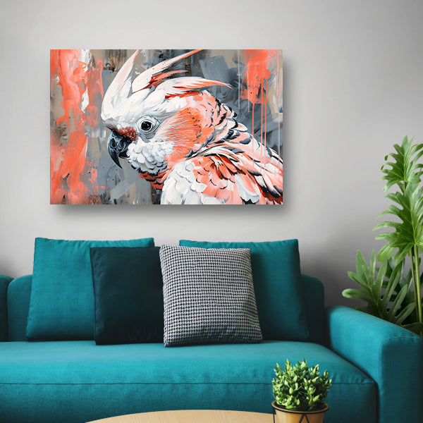 Abstracte schilderij van kleurrijke papegaai canvas met baklijst