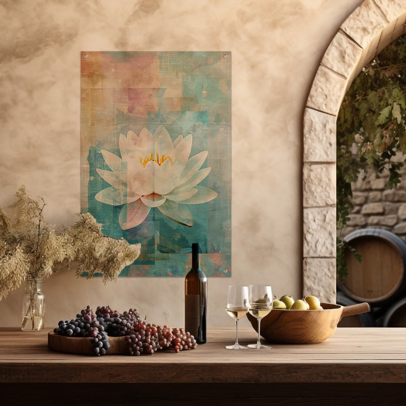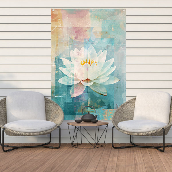Abstracte schildering van een waterlelie tuinposter