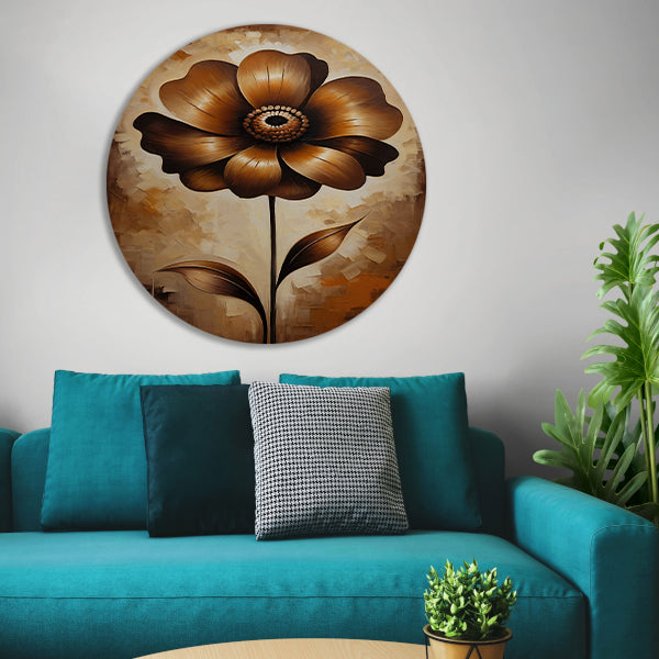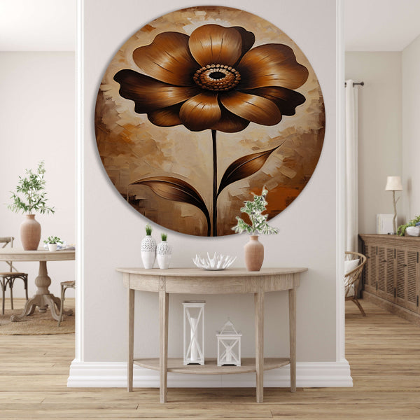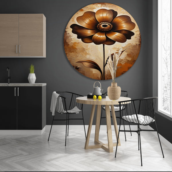 Abstracte Sepia Bloem in Olieverfstijl aluminium muurcirkel