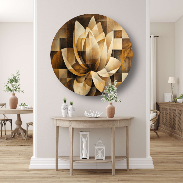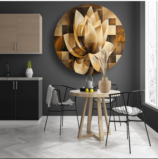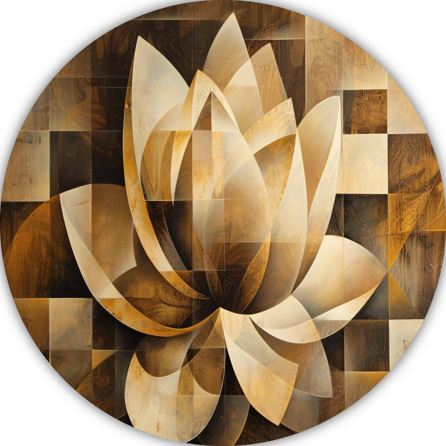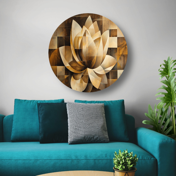 Abstracte Sepia Lotus Kunstwerk aluminium muurcirkel