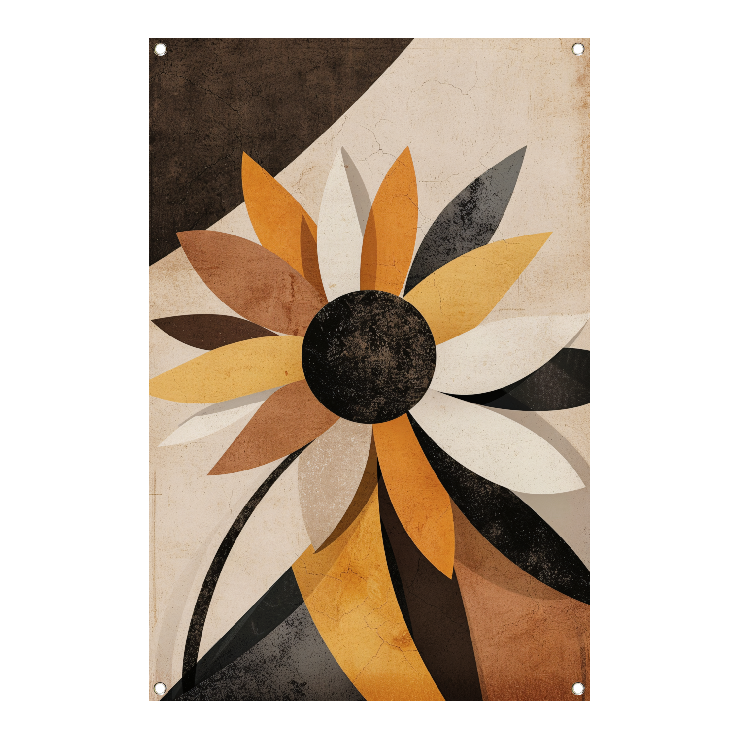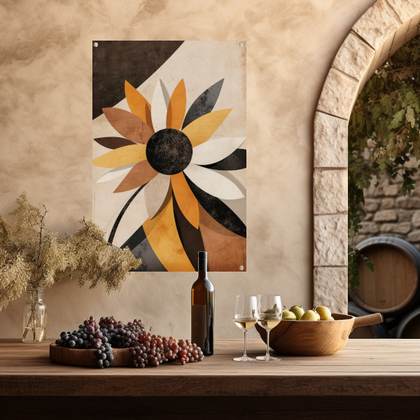 Abstracte Sepia Zonnebloem Geometrisch Ontwerp tuinposter