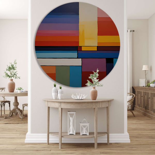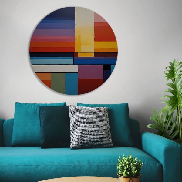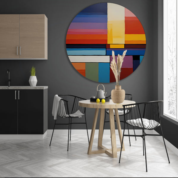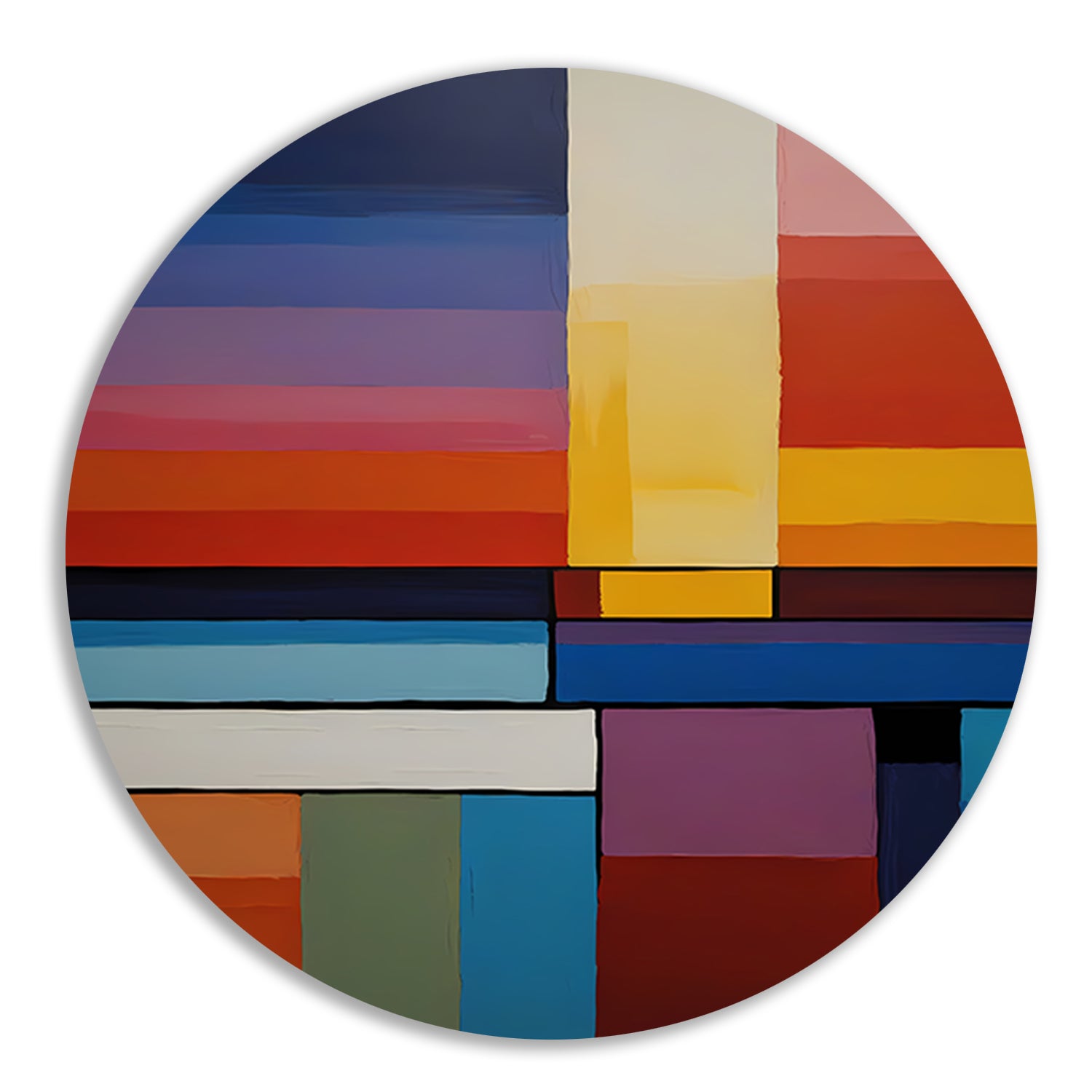 Abstracte symfonie van gekleurde vlakken aluminium muurcirkel