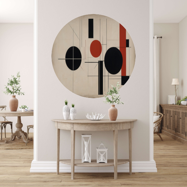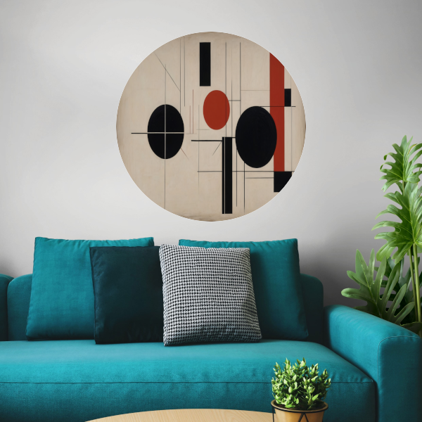 Abstracte Symmetrie in Rood, Zwart en Wit aluminium muurcirkel