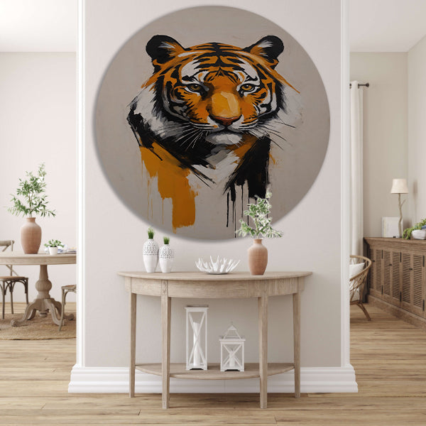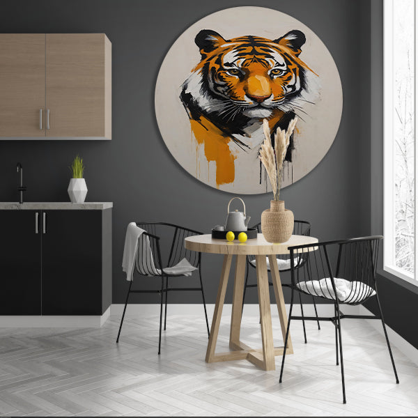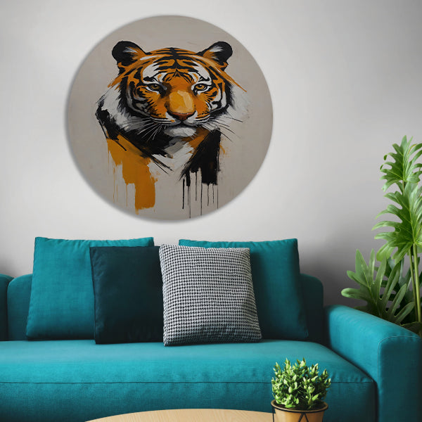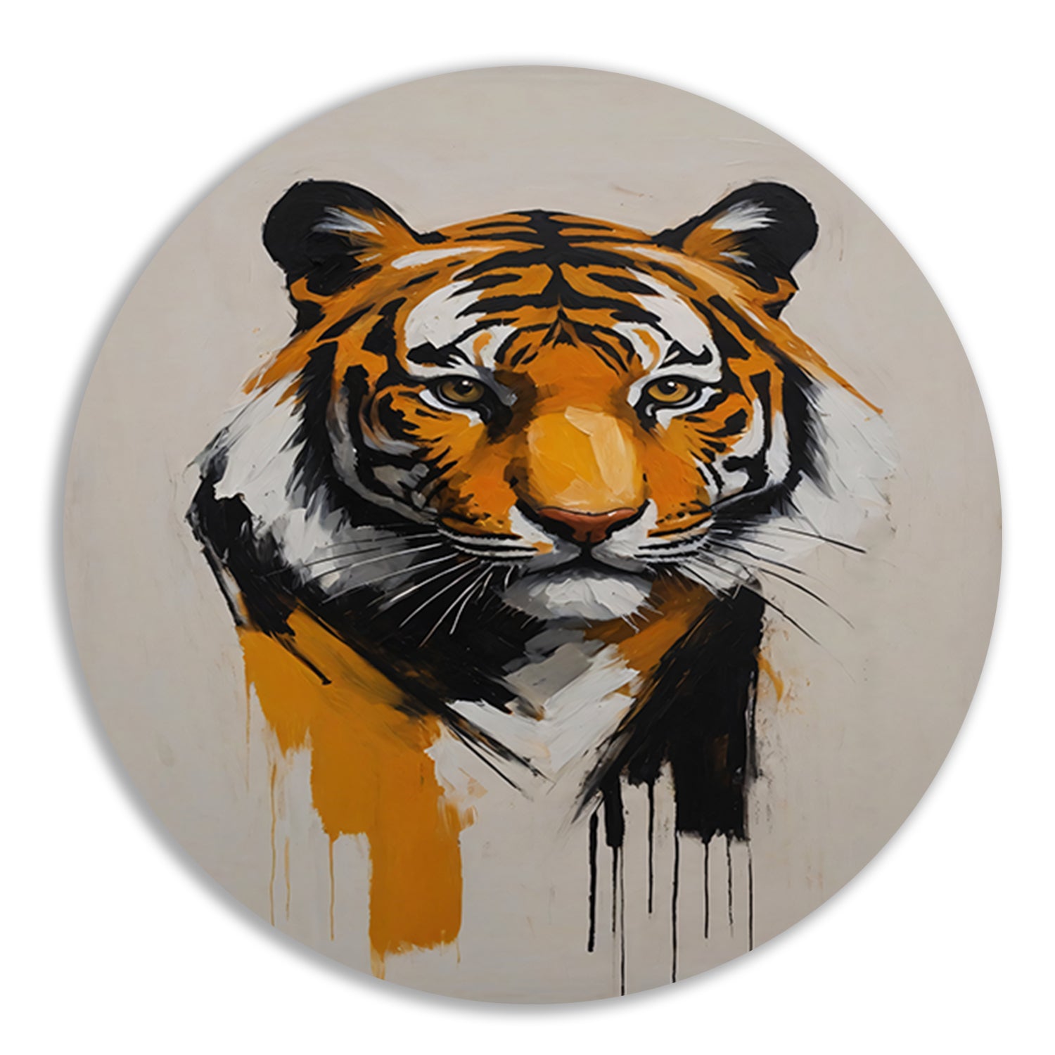 Abstracte Tijger in Moderne Kunstuitdrukking aluminium muurcirkel