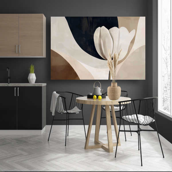 Een canvas met baklijst geeft je interieur een luxe en afgewerkte uitstraling. Onze baklijsten zijn gemaakt van hoogwaardig hout en verkrijgbaar in zwart met een zichtbare houtnerfstructuur, wat een moderne en elegante look biedt. De lijst heeft een framedikte van 3,5 cm. De montage van het canvas in de baklijst en aan de muur is eenvoudig.