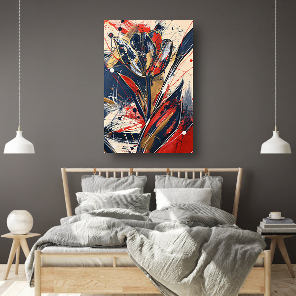 Abstracte tulpen kunst met dynamische kleuren canvas met baklijst