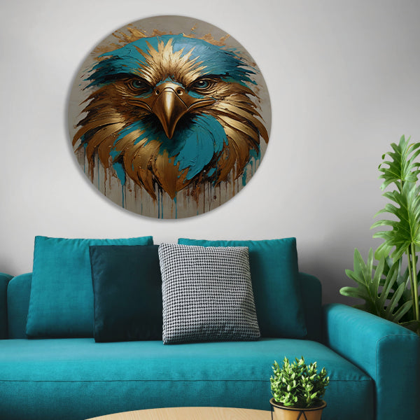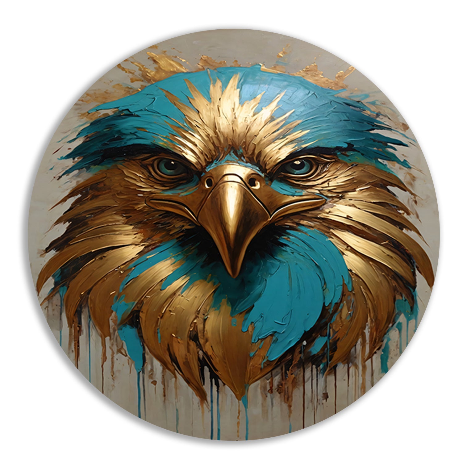 Abstracte Turkoois en Gouden Adelaar aluminium muurcirkel