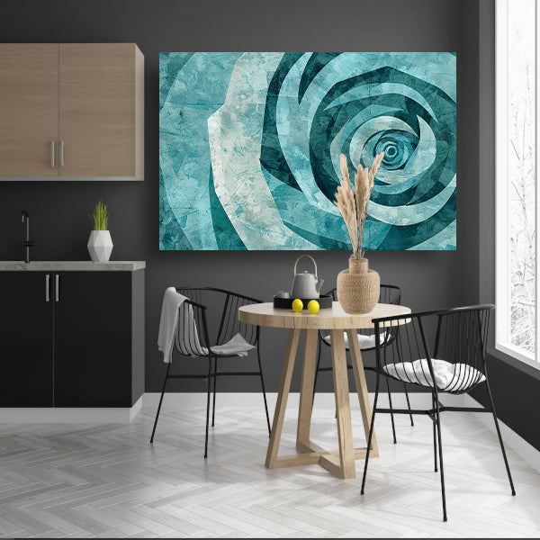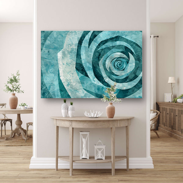 Abstracte turquoise roos in geometrische vormen canvas met baklijst
