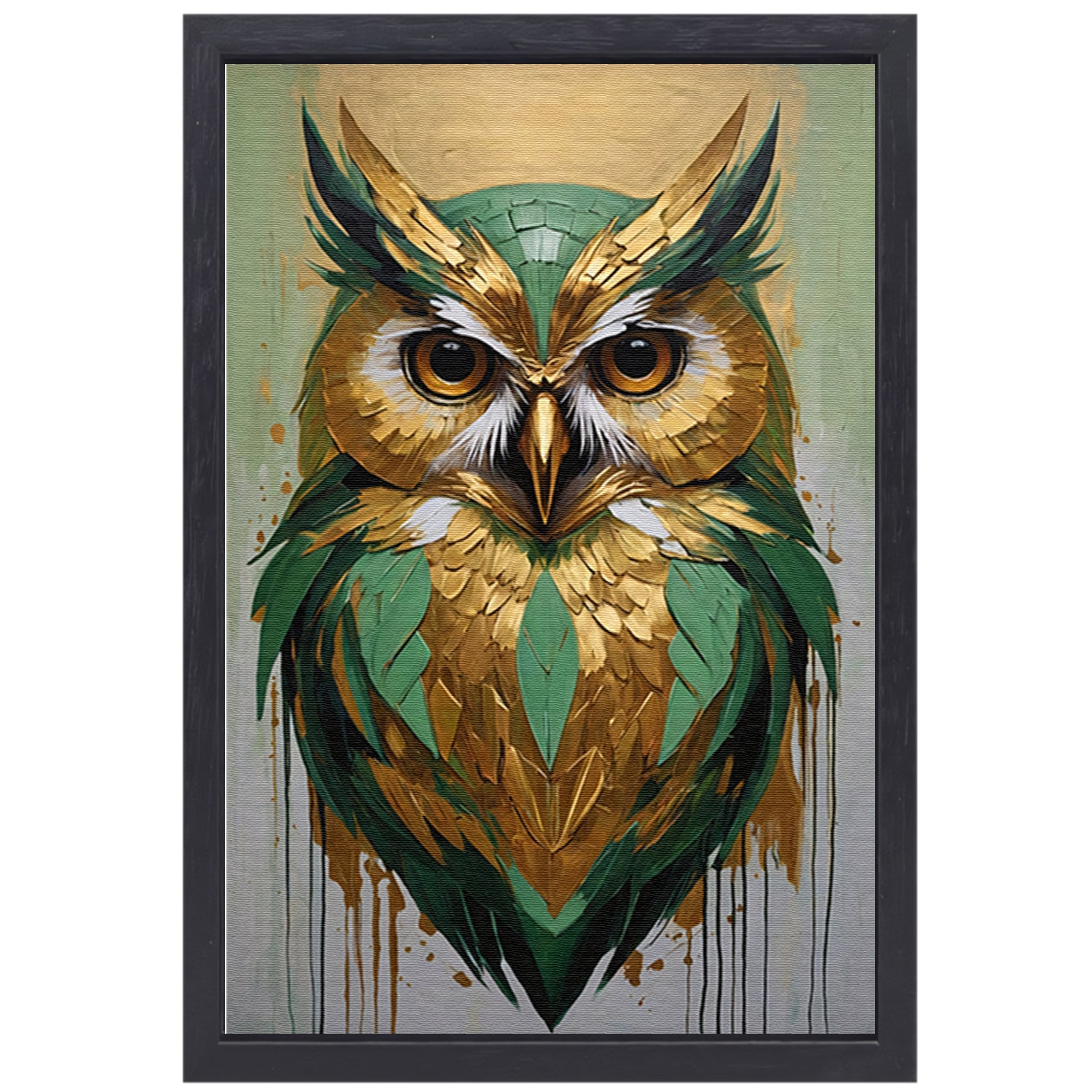 Abstracte Uil in Goud en Groen Tinten canvas met baklijst