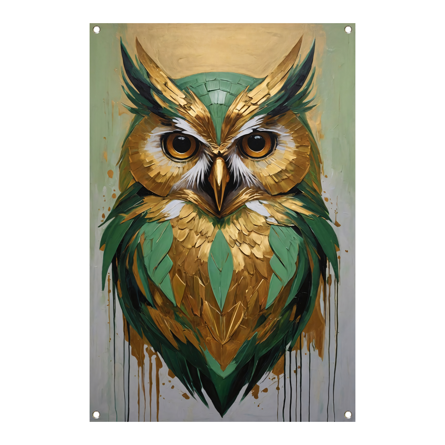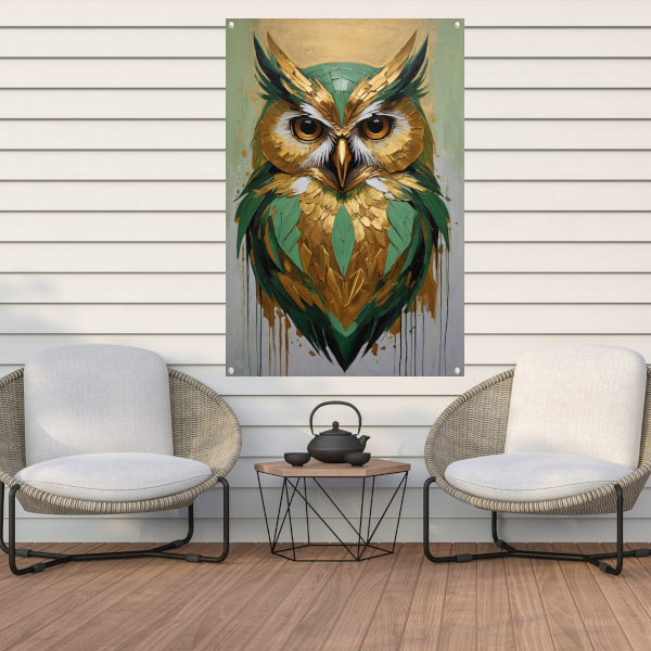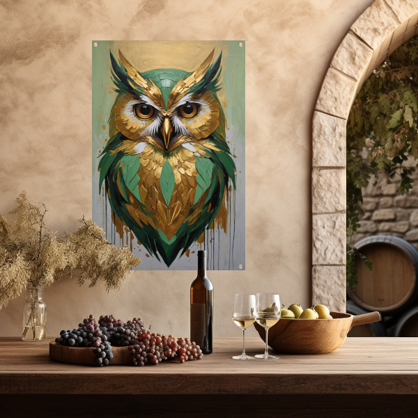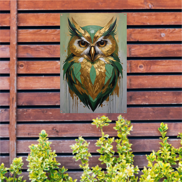 Abstracte Uil in Goud en Groen Tinten tuinposter