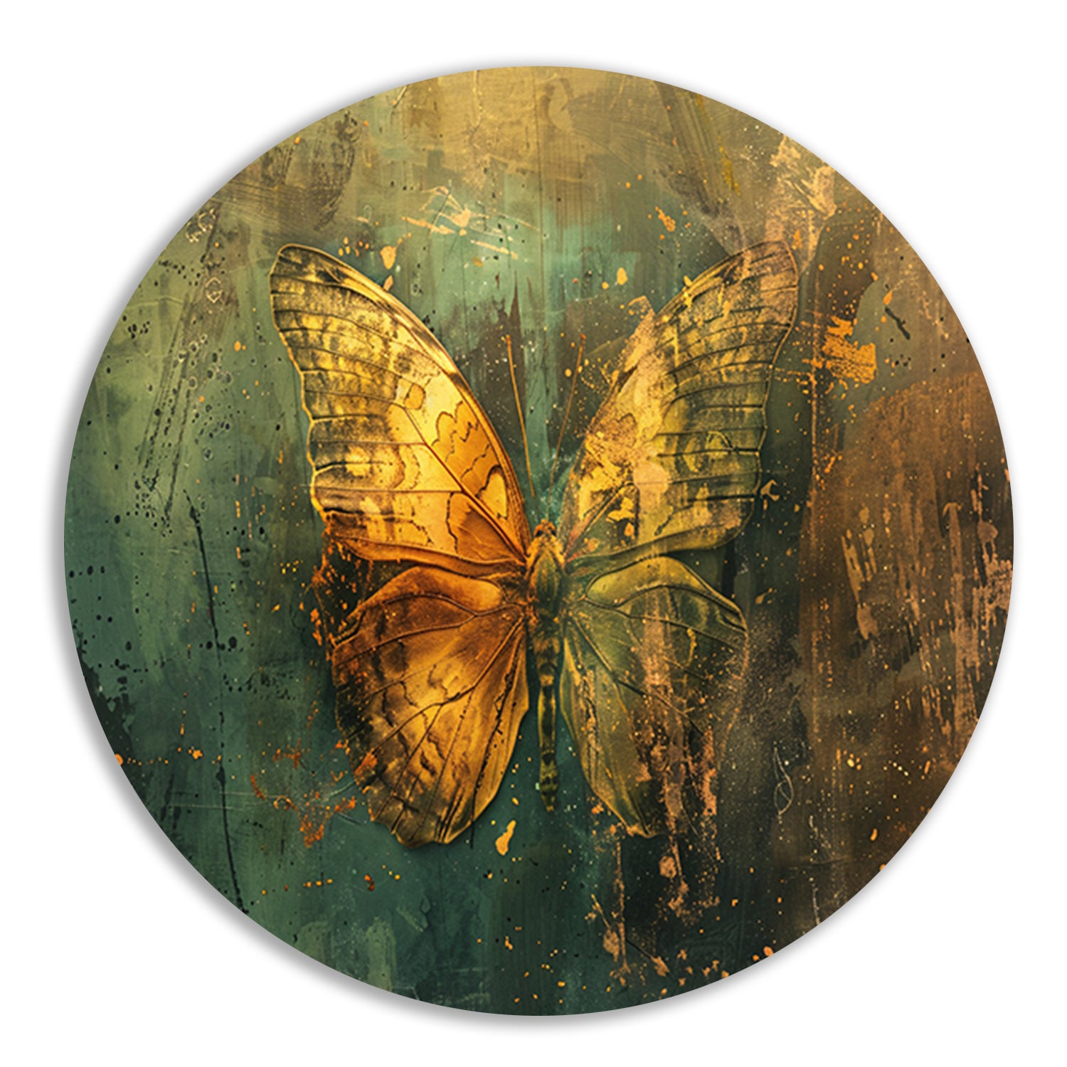 Abstracte vlinder in rustieke stijl schilderij aluminium muurcirkel