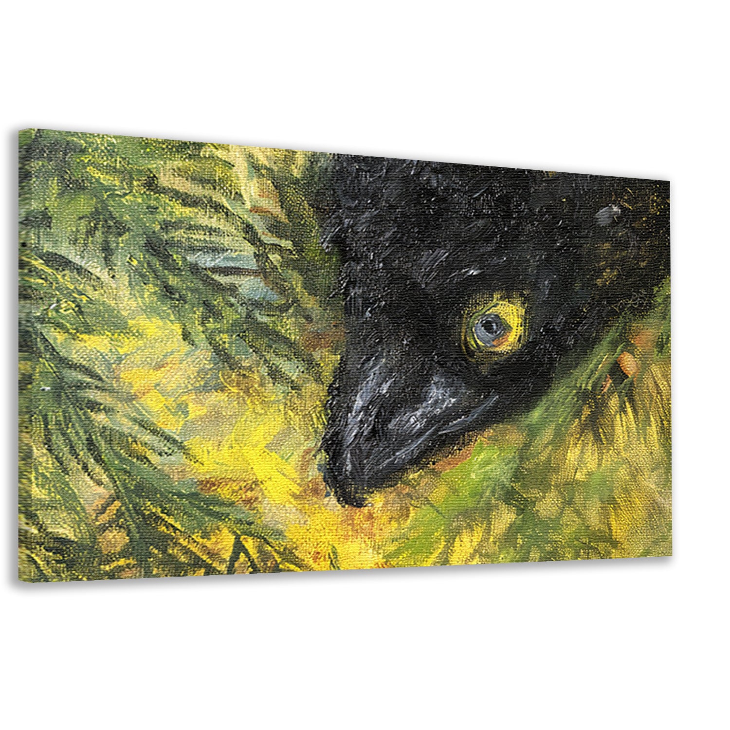 Abstracte vogel in levendige kleuren en bladeren canvas