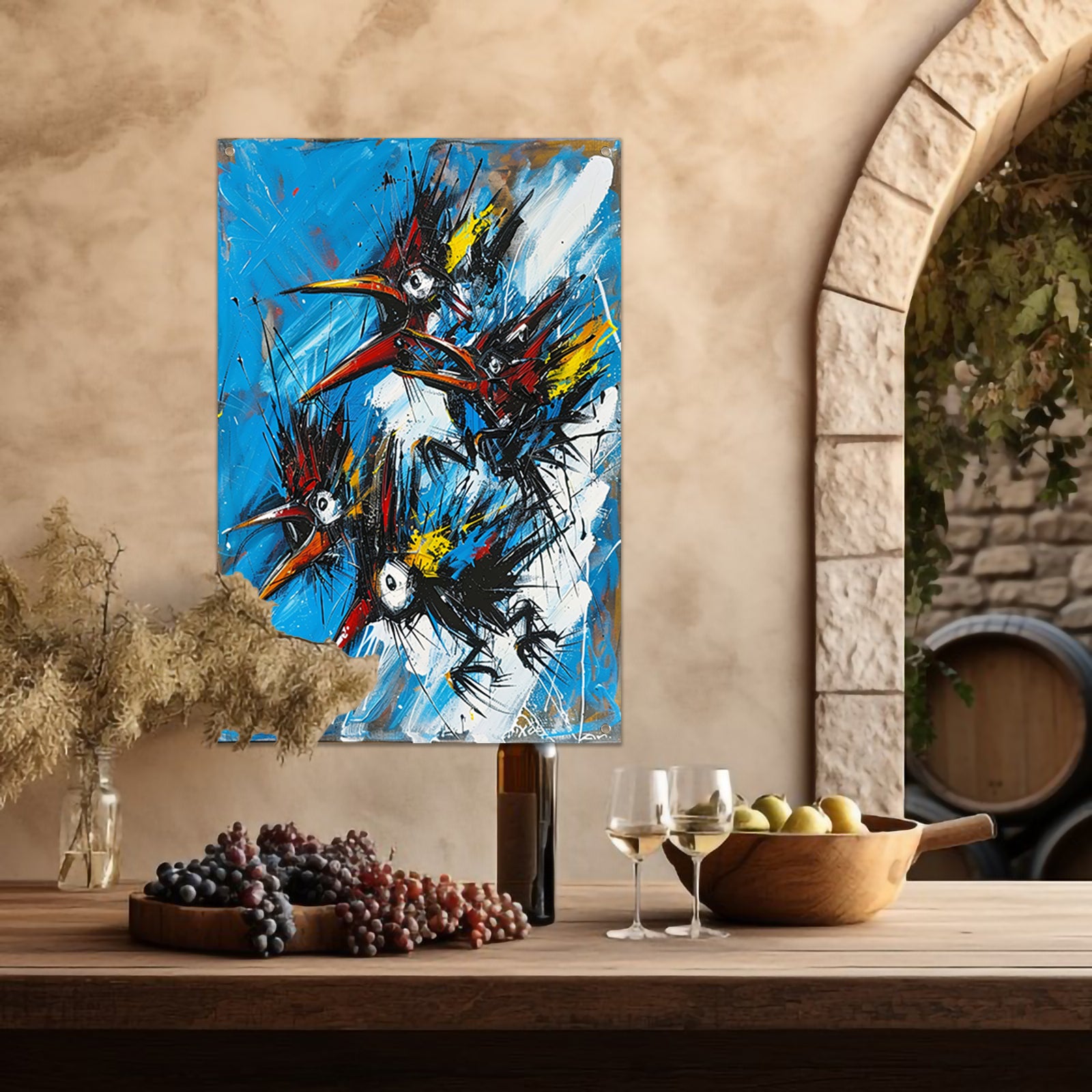 Abstracte Vogels in Kleurrijke Chaos tuinposter