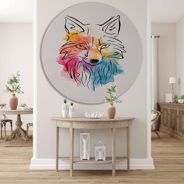 Abstracte Vos in Kleurrijke Aquarel aluminium muurcirkel