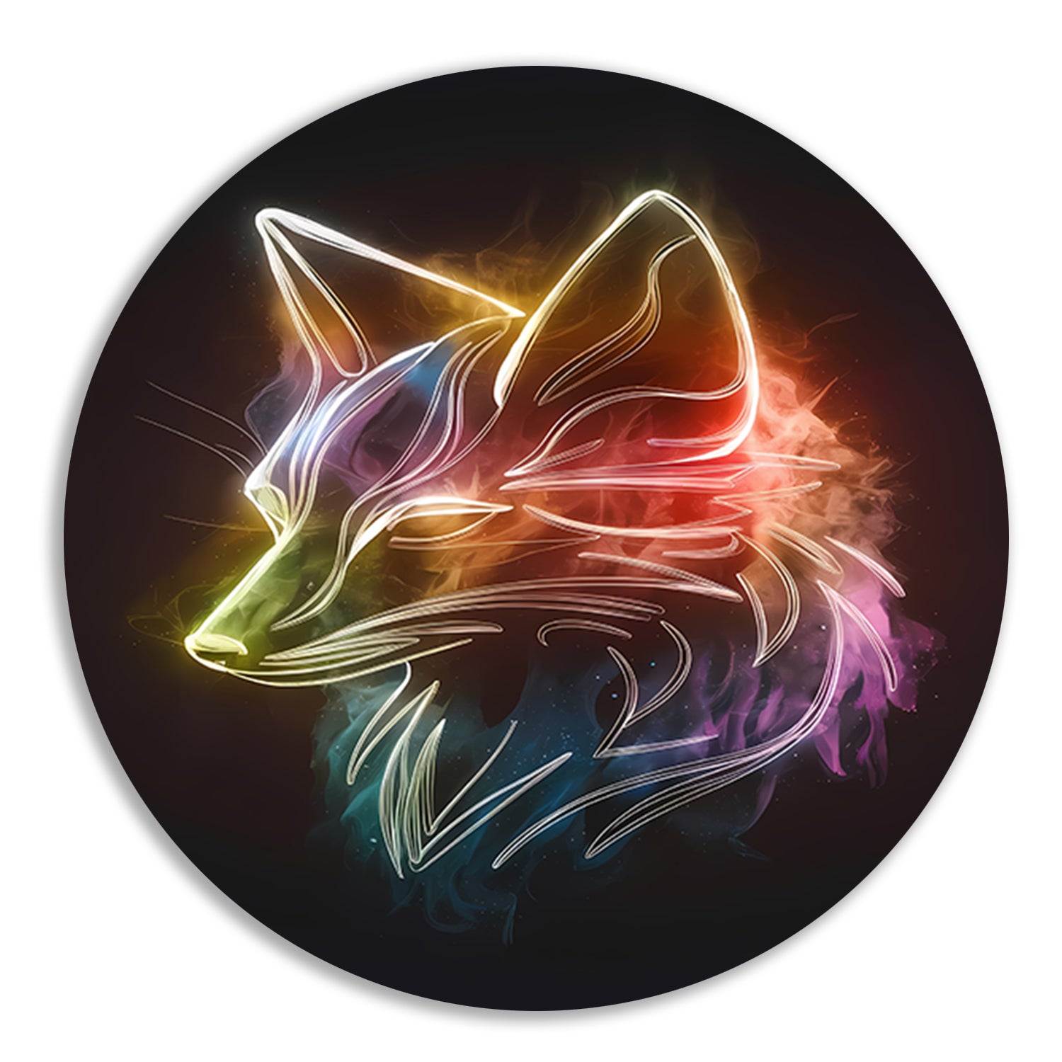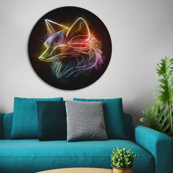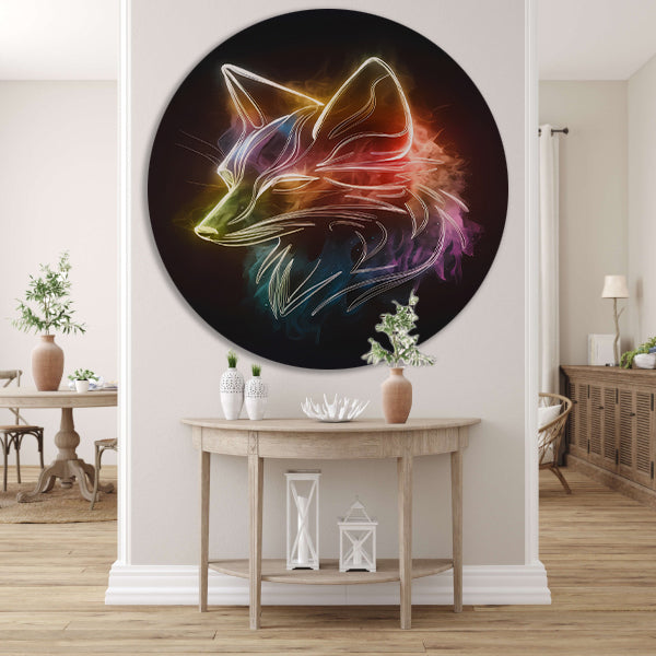 Abstracte Vos in Kleurrijke Nevel aluminium muurcirkel