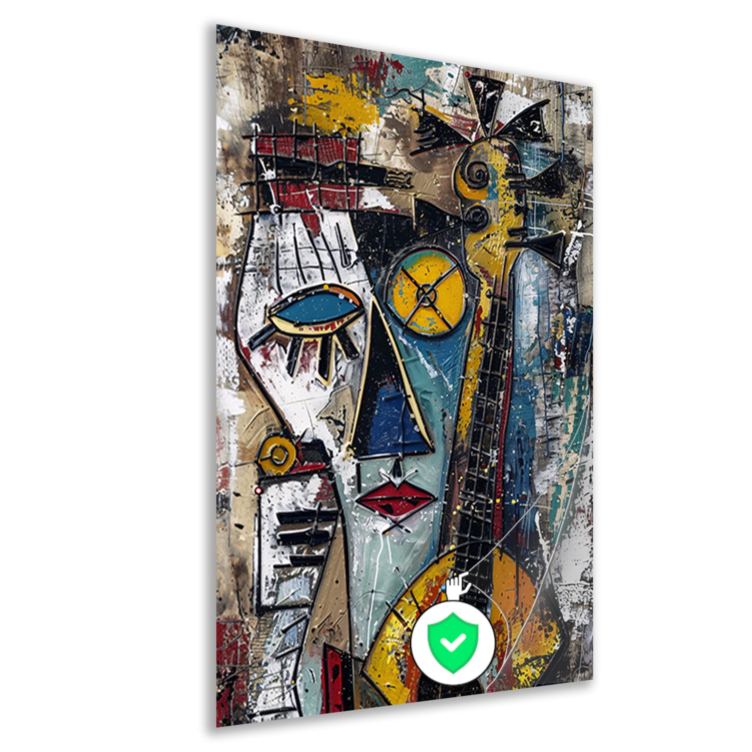 Abstracte Vrouw met Gitaar in Kleuren poster