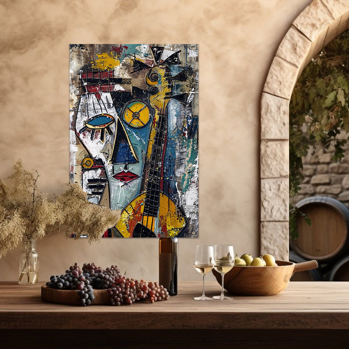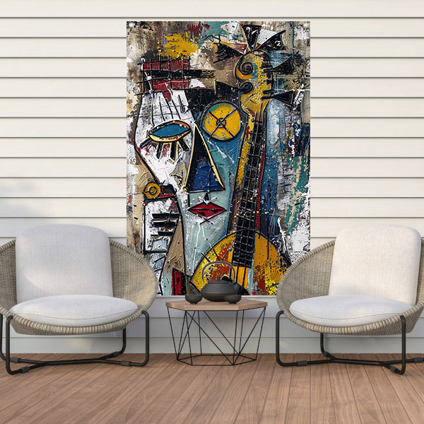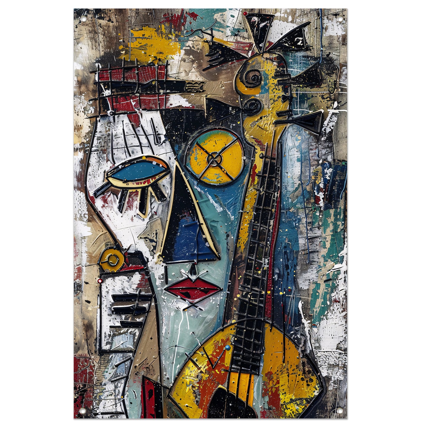 Abstracte Vrouw met Gitaar in Kleuren tuinposter