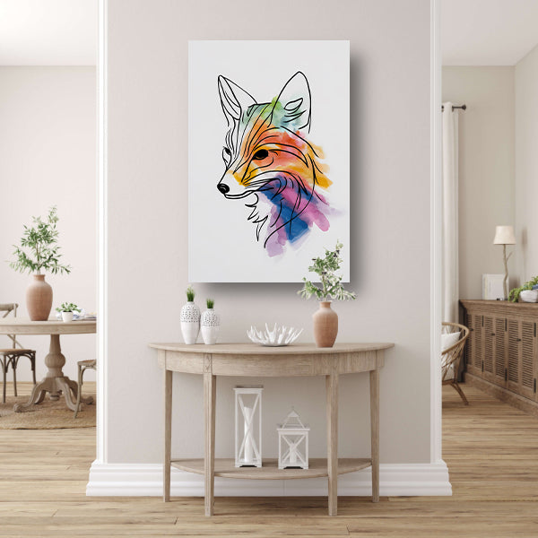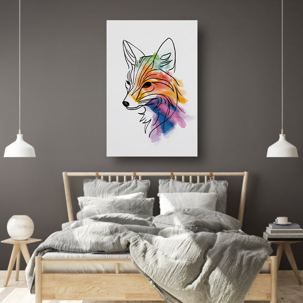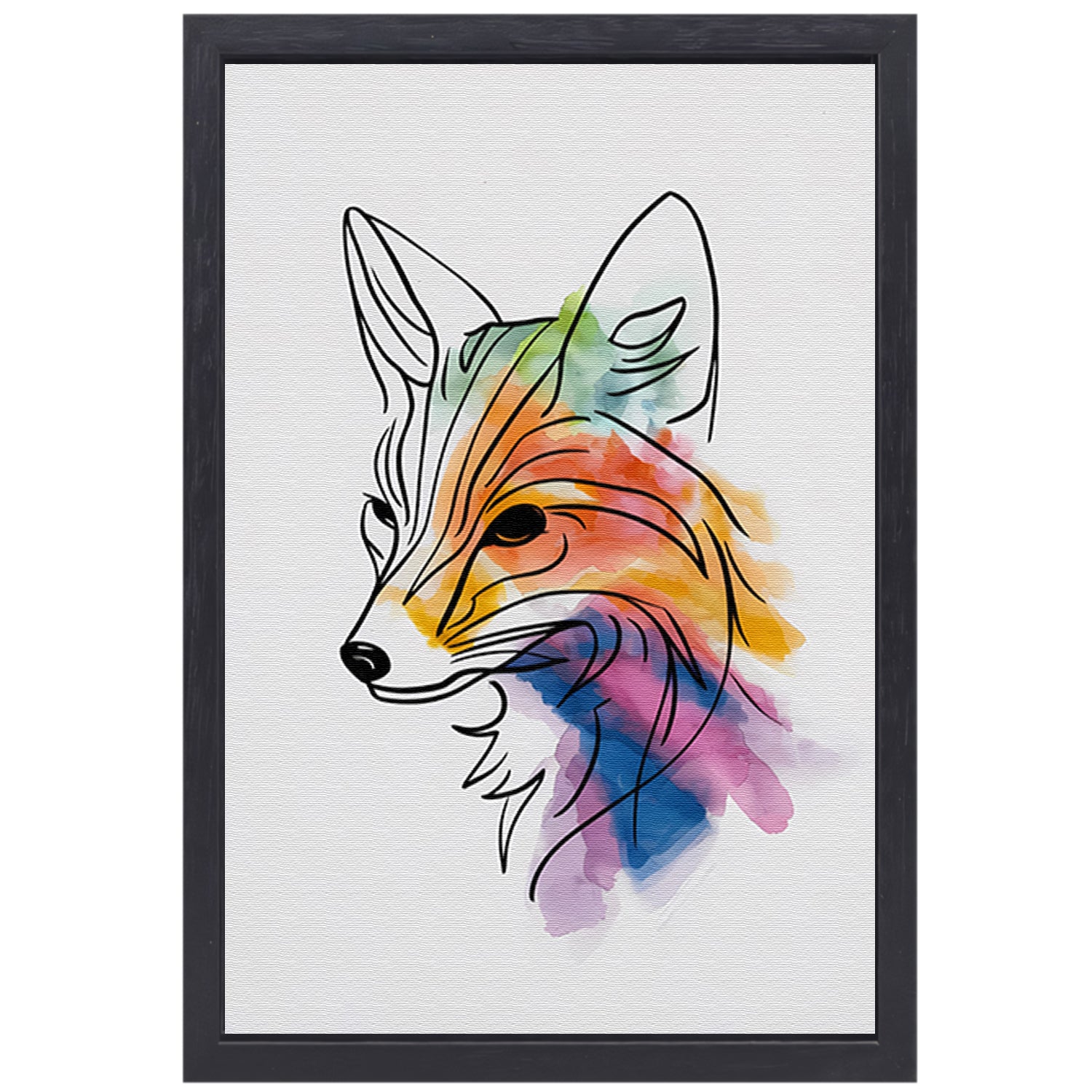 Abstracte waterkleur vos in lijnkunst canvas met baklijst