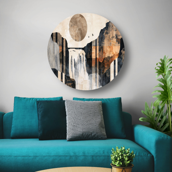 Abstracte waterval in japandi stijl forex muurcirkel