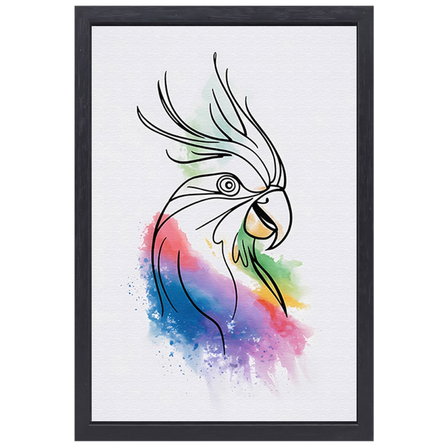 Abstracte waterverf vogel in kleurrijke lijnen canvas met baklijst