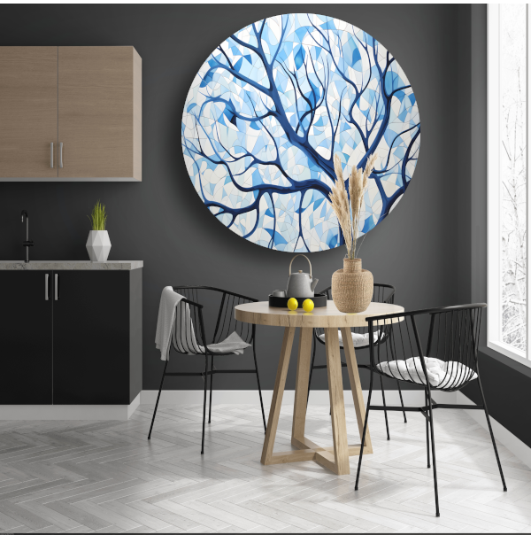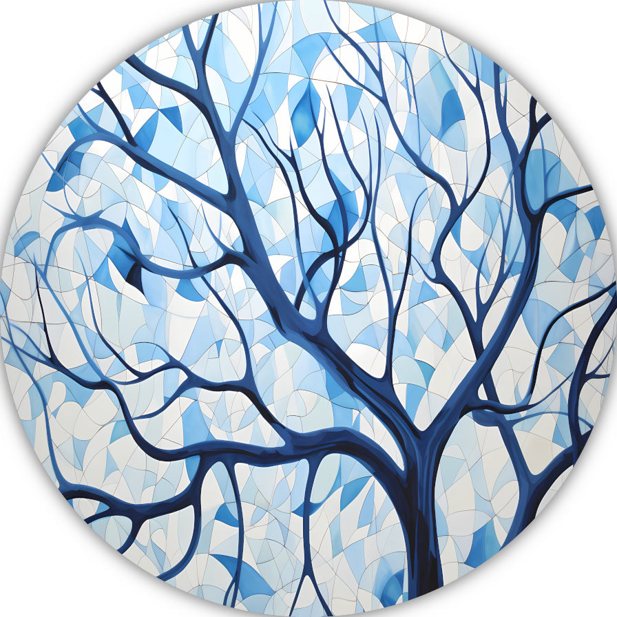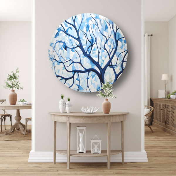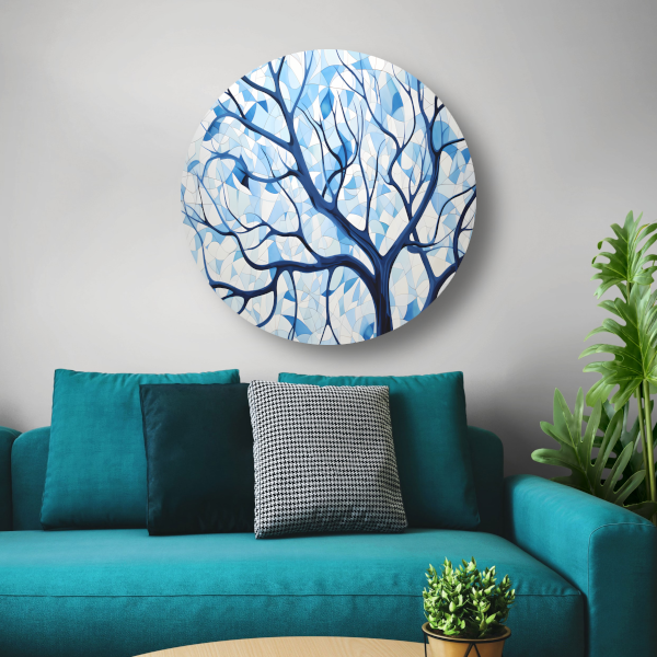 Abstracte Weergave van Blauwe Boomtakken aluminium muurcirkel