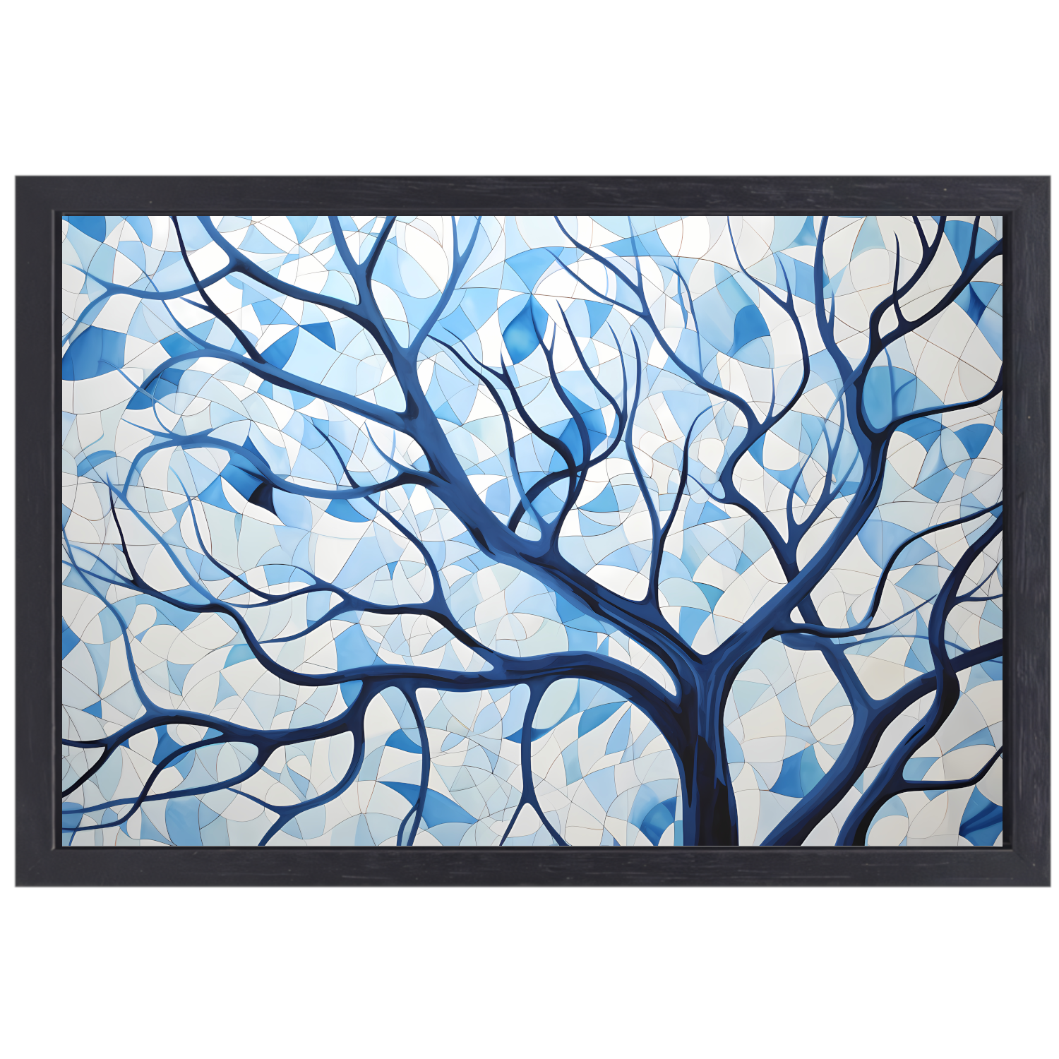 Abstracte Weergave van Blauwe Boomtakken canvas met baklijst