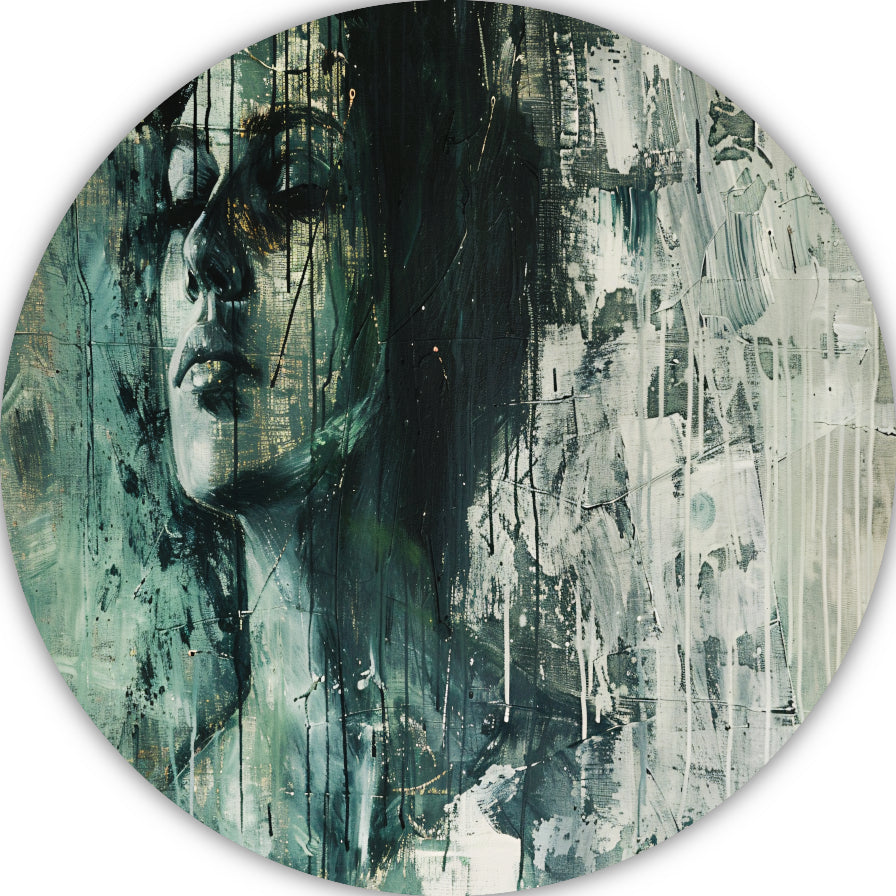 Abstracte weergave van een vrouw in contemplatie aluminium muurcirkel