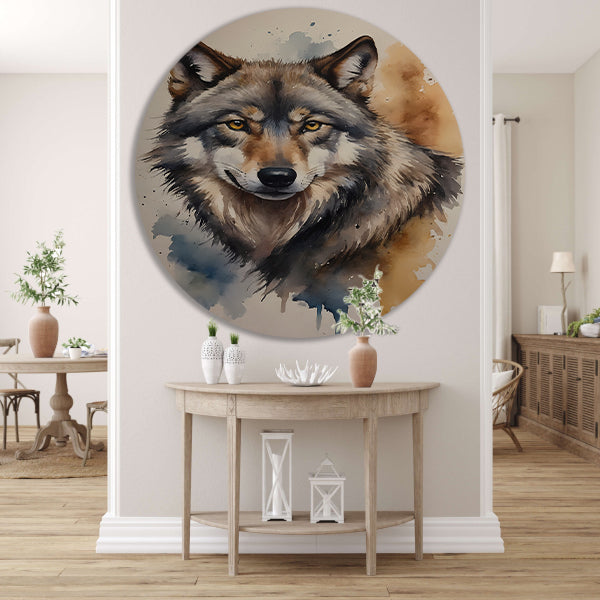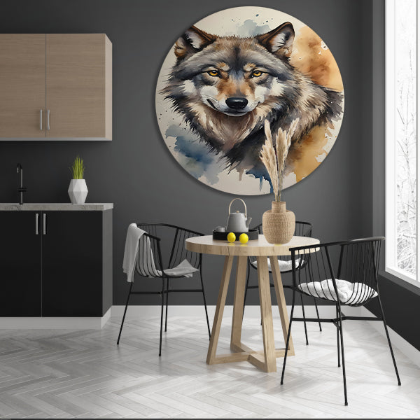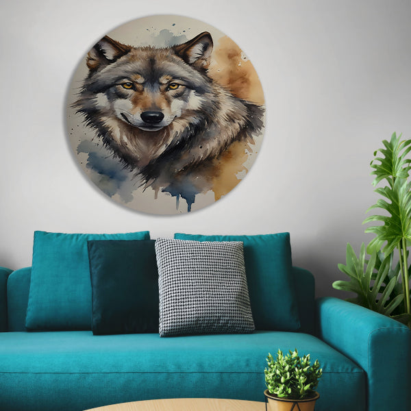 Abstracte Wolf in Levendige Waterverf aluminium muurcirkel