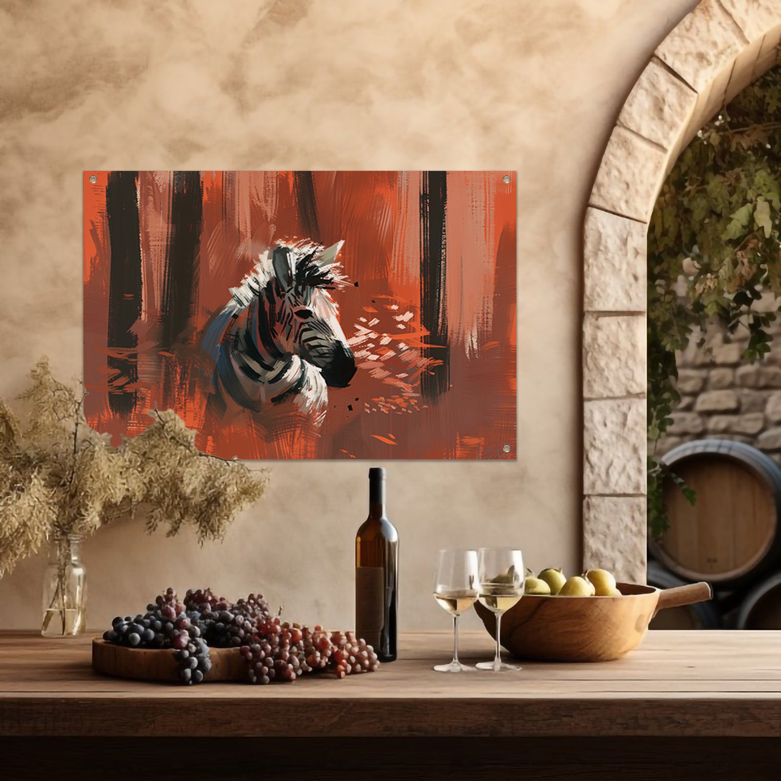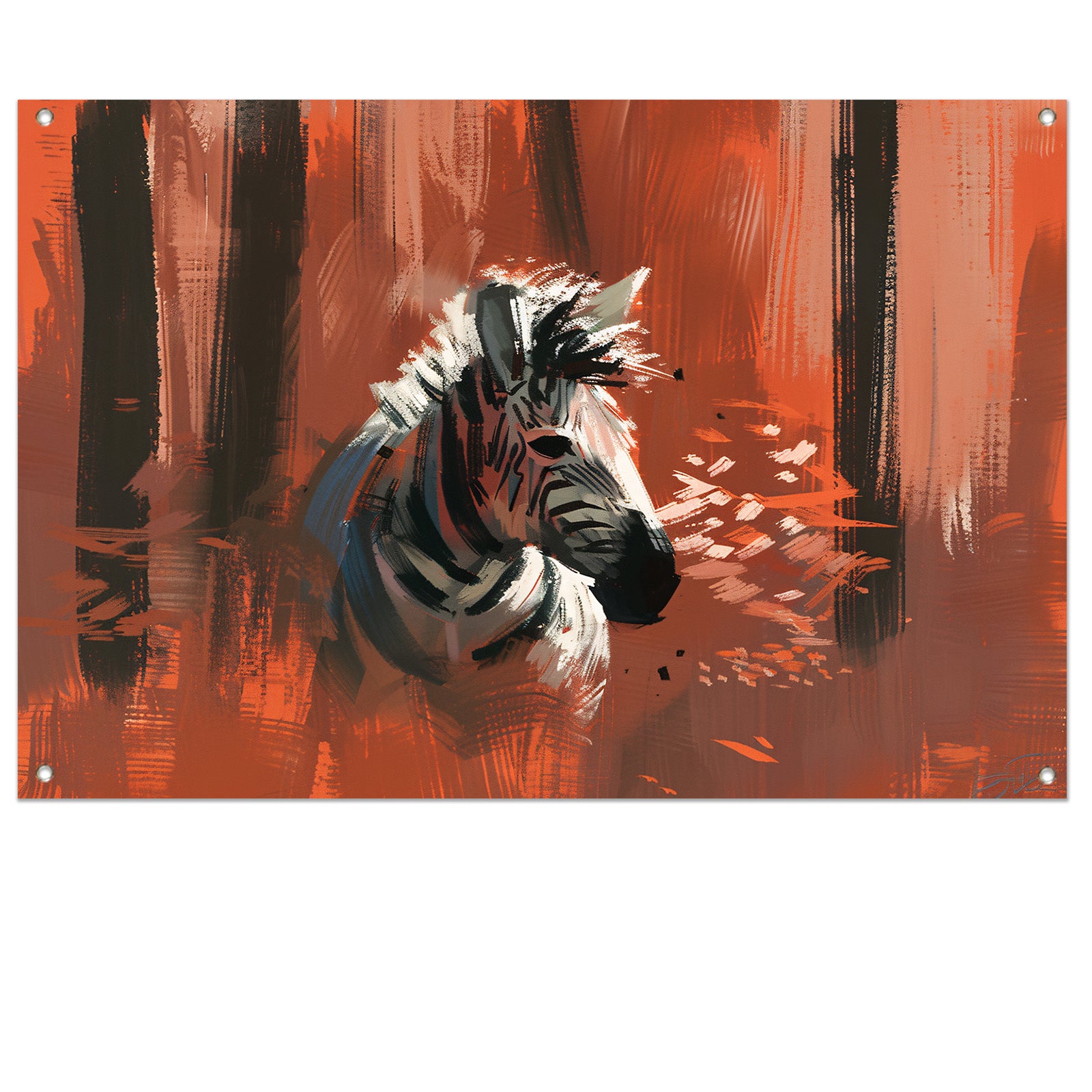 Abstracte zebra in kleurrijk boslandschap tuinposter