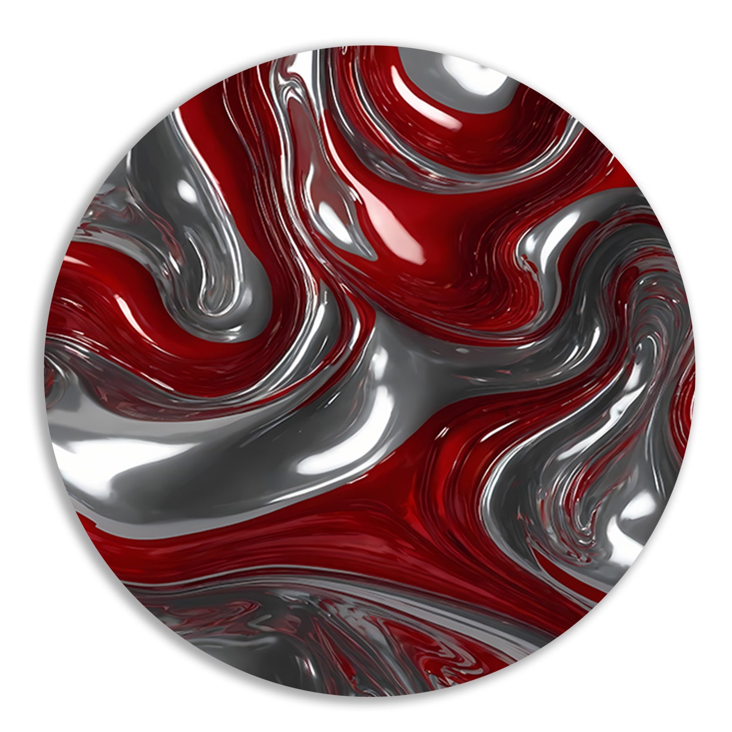 Abstracte Zilveren en Rode Vloeiende Dynamiek aluminium muurcirkel
