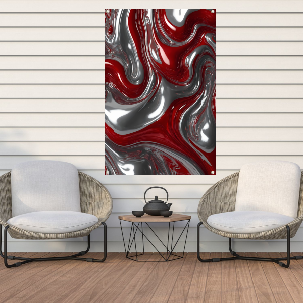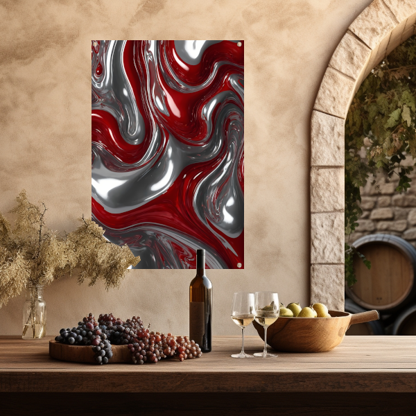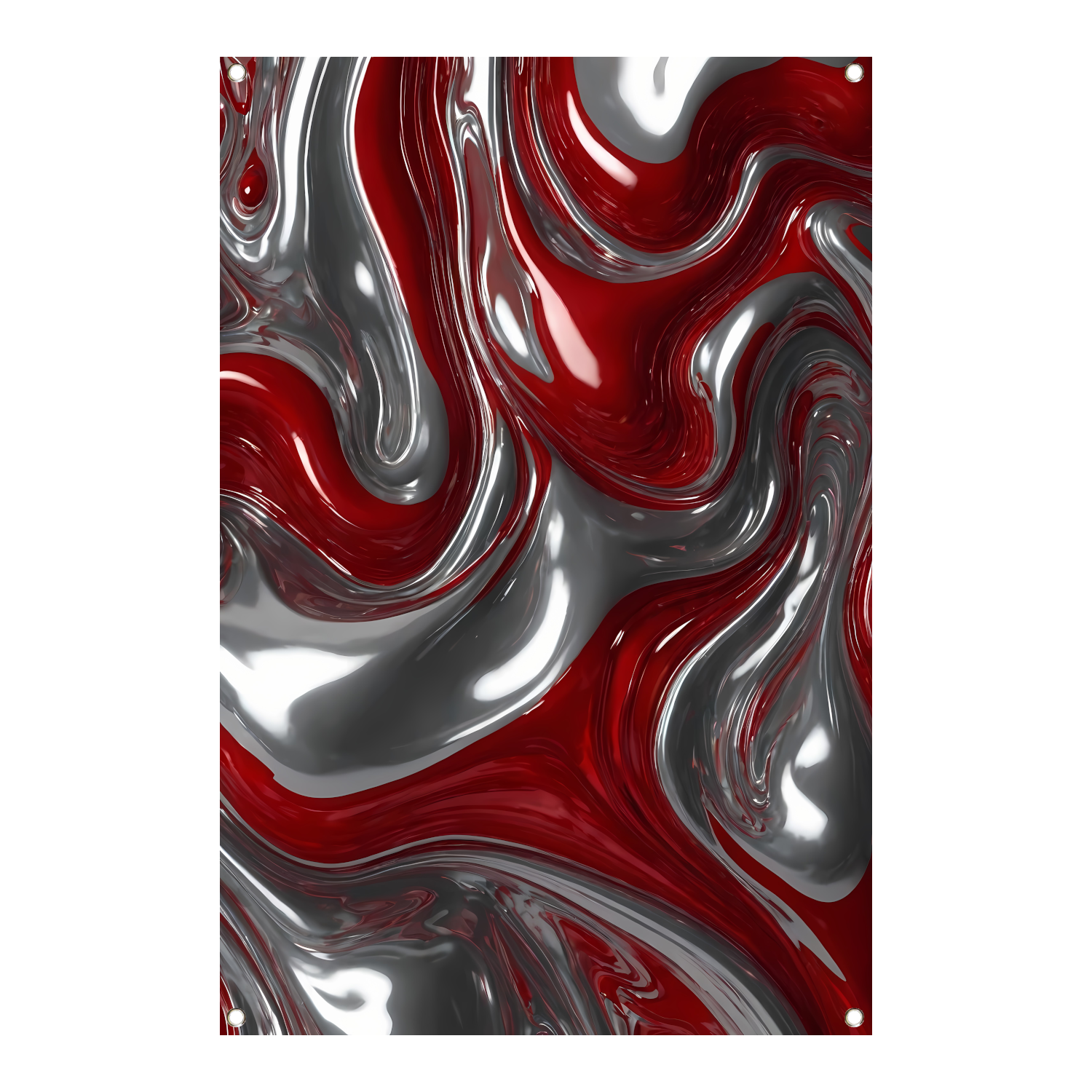 Abstracte Zilveren en Rode Vloeiende Dynamiek tuinposter