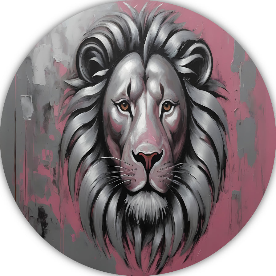 Abstracte Zilveren Leeuw met Roze Achtergrond aluminium muurcirkel